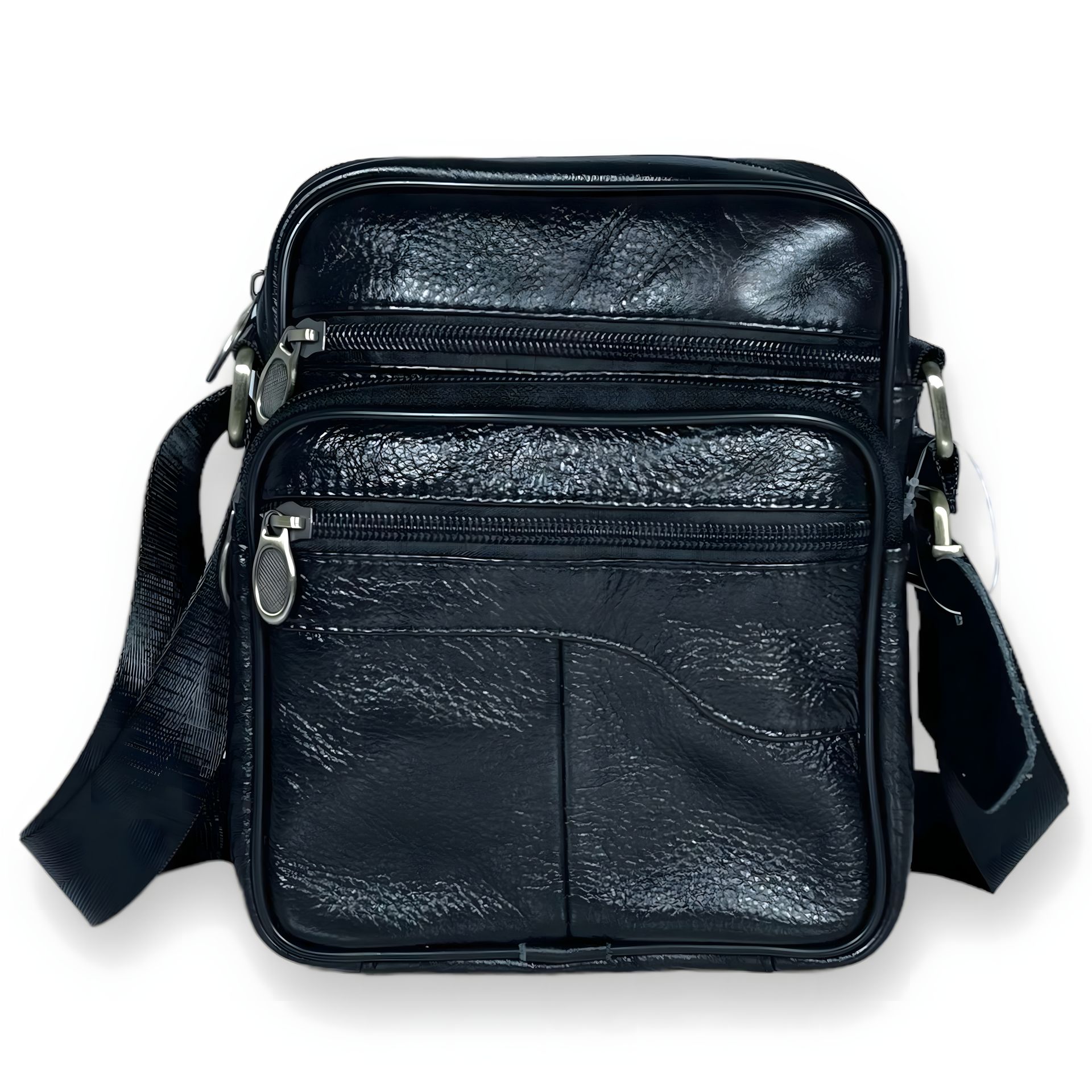 Сумка через плечо Gorangd, кожа, одно основное отделение, три фронтальных кармана на замке, один задний карман на замке, внутренний карман на замке, несъемный регулируемый ремень, размер: 20*17*8 см, черный.