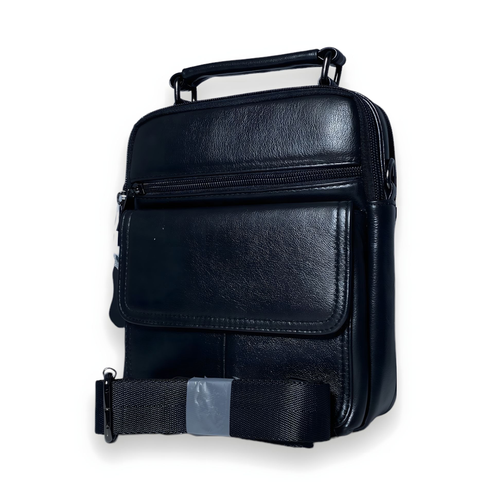 Сумка через плечо мужская, натуральная кожа, два отдела, дополнительные карманы, размер: 22*20*7 см, черный