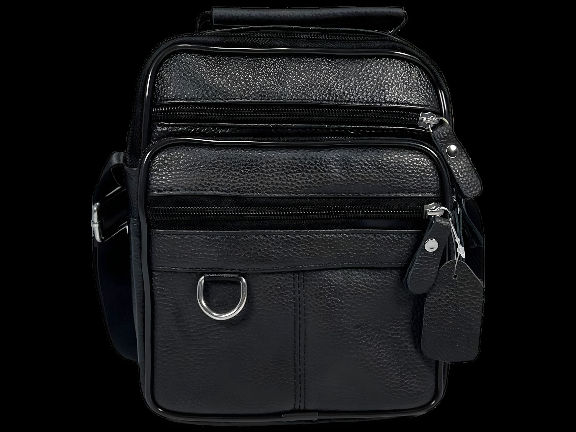 Кожаная сумка через плечо на четыре отделения, чёрная, 3 л, с ручками для переноса