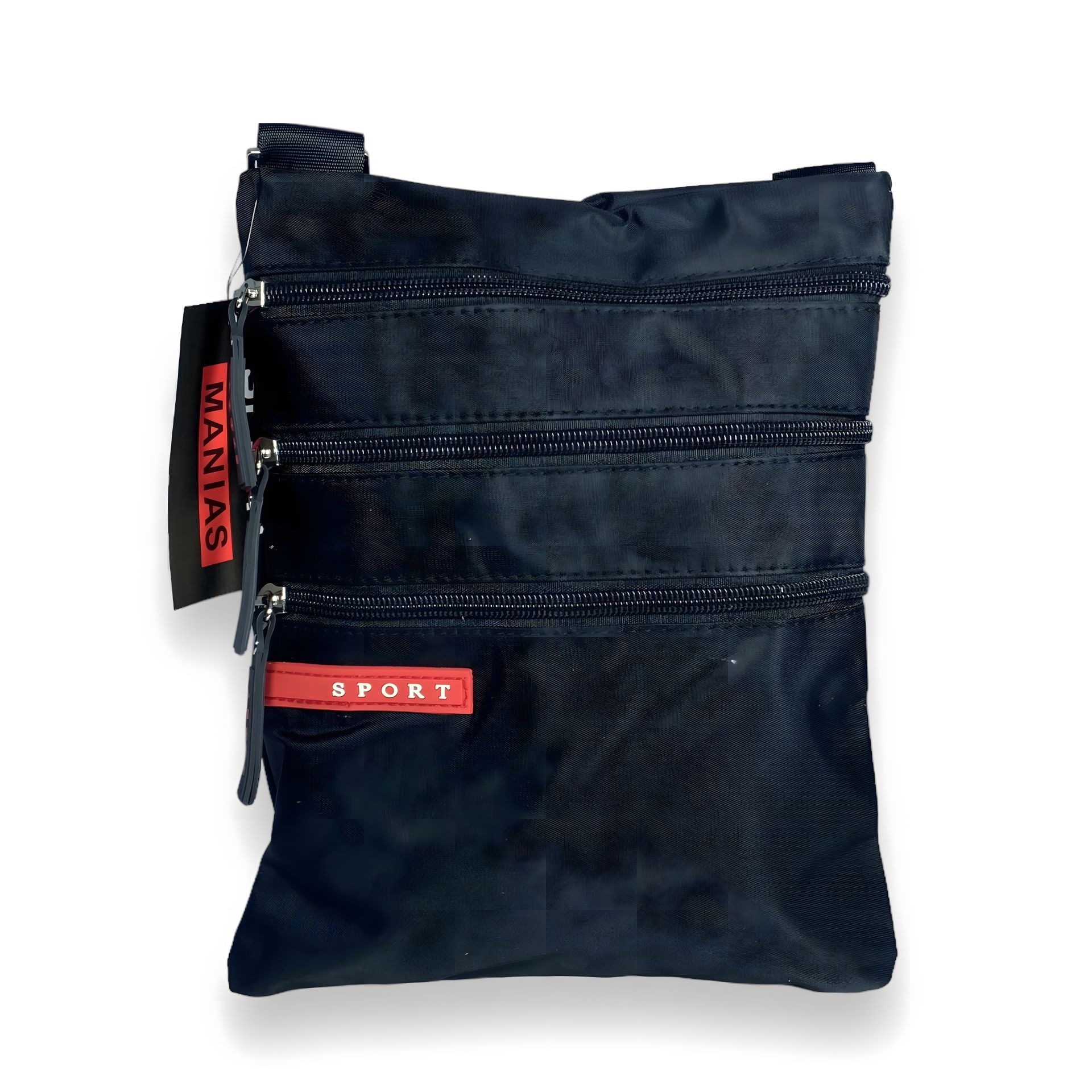 Сумка через плечо Sport Manias, три фронтальных кармана на замке, задняя карман на замке, размер 25*20*1 см, черная.