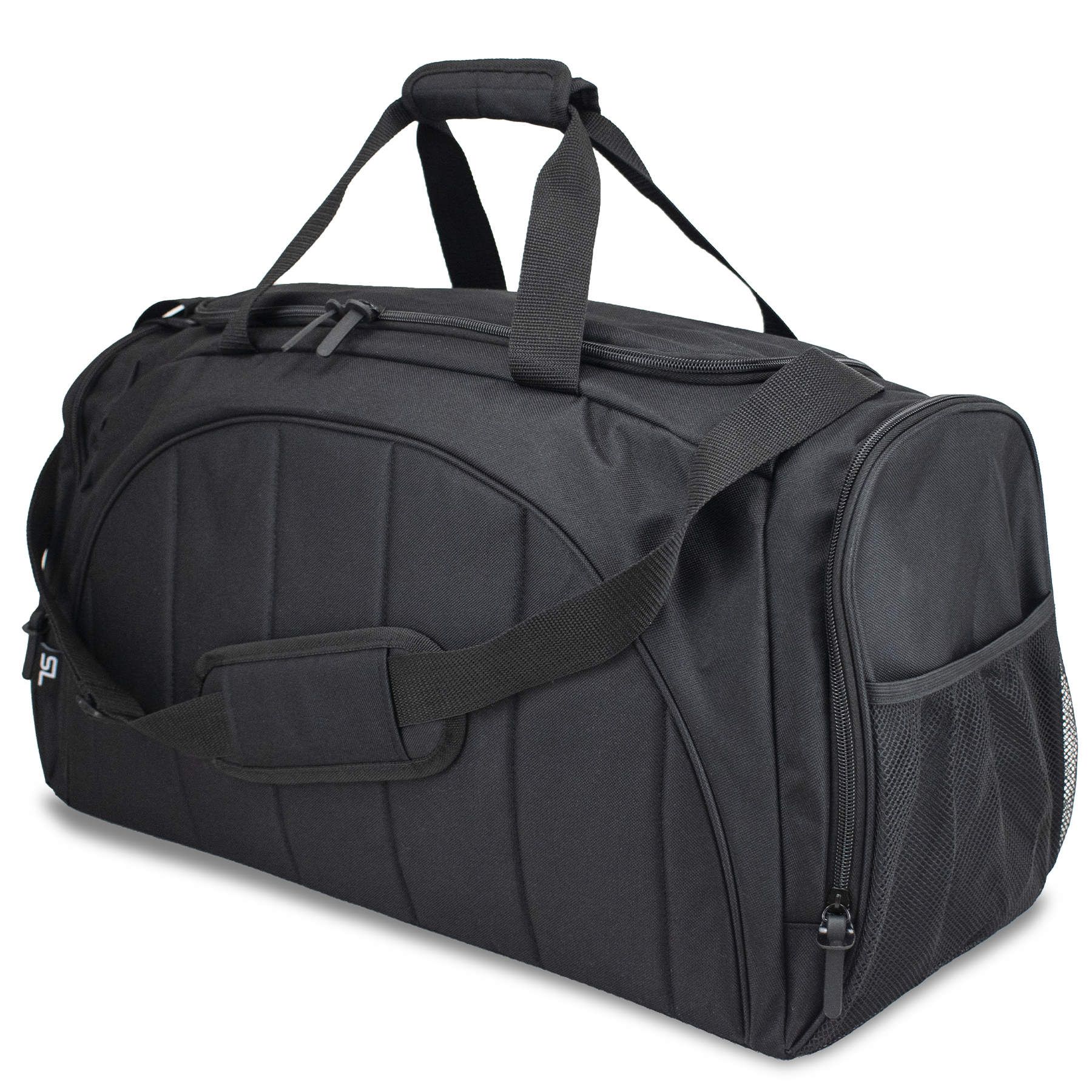 Водостойкая сумка для фитнеса и путешествий Semi Line 47 Black с мягкими подкладками на стенках и дне, помогающими держать форму и защищающими содержимое сумки от повреждений. Сумка оборудована широкими ручками соединенными манжетой на тестильной застежке Velcro. Объемный центральный отдел позволит разместить личные вещи и спортивный инвентарь, такой как теннисная ракетка или боксерские перчатки со шлемом. Все более мелкие вещи по своим местам можно разместить в двух внешних карманах на молнии и сетчатом кармане. Длинный наплечный ремень имеет мягкую, а главное длинную и широкую подкладку, которая не передавливает плечо.