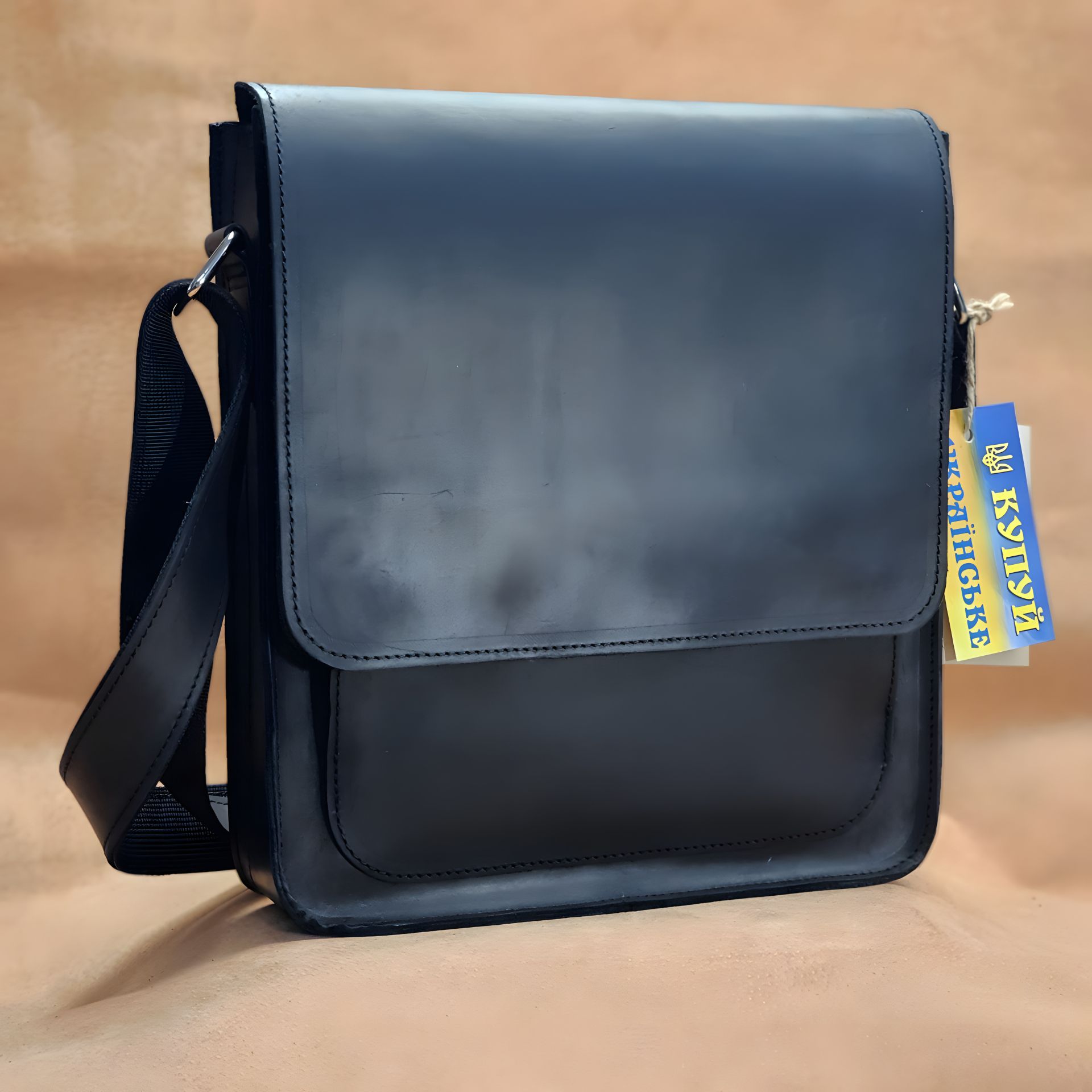Мужская кожаная сумка GS через плечо 28*24*6 см черная