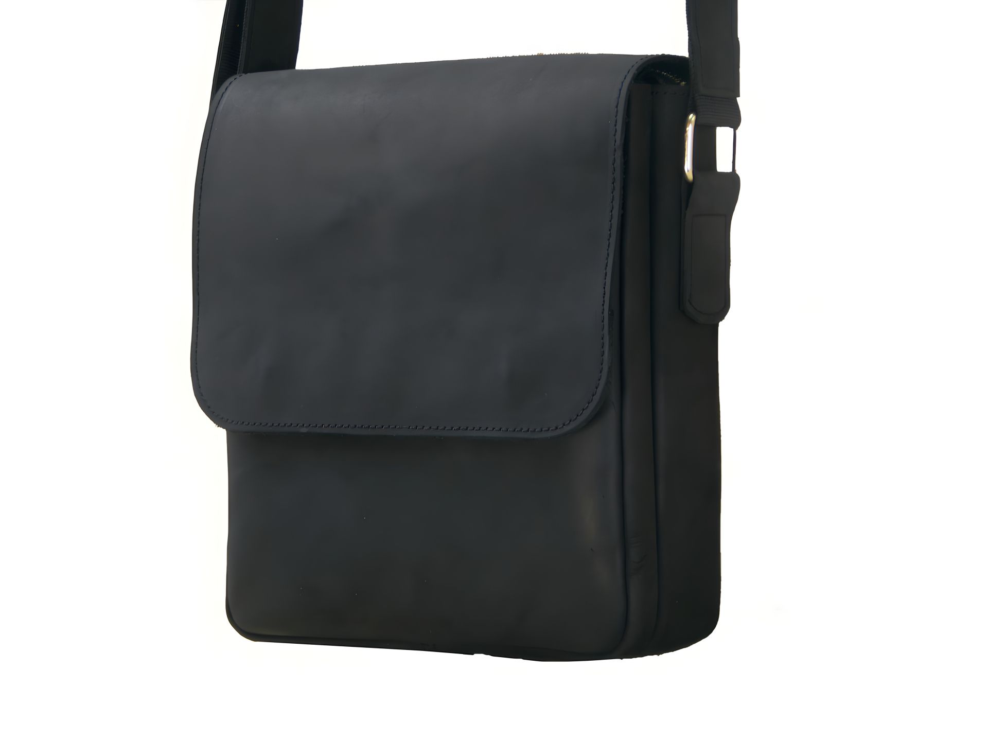 Повседневная мужская сумка из натуральной кожи с ремнем через плечо. Кожа КРС повышенной прочности , обработанная воском , винтажная Crazy Horse. В сумке 2 основных отдела размерами 22*20*2 см и 22*20*5 см , которые закрываются металлическими молниями. В одном из отделов небольшой карман для документов или ключей. Спереди и сзади карманы на молнии . Вся сумка закрывается клапаном с магнитными кнопками. Ремень через плечо (150 см) обшит кожей и регулируется по длине . Размеры 23*20*7 см