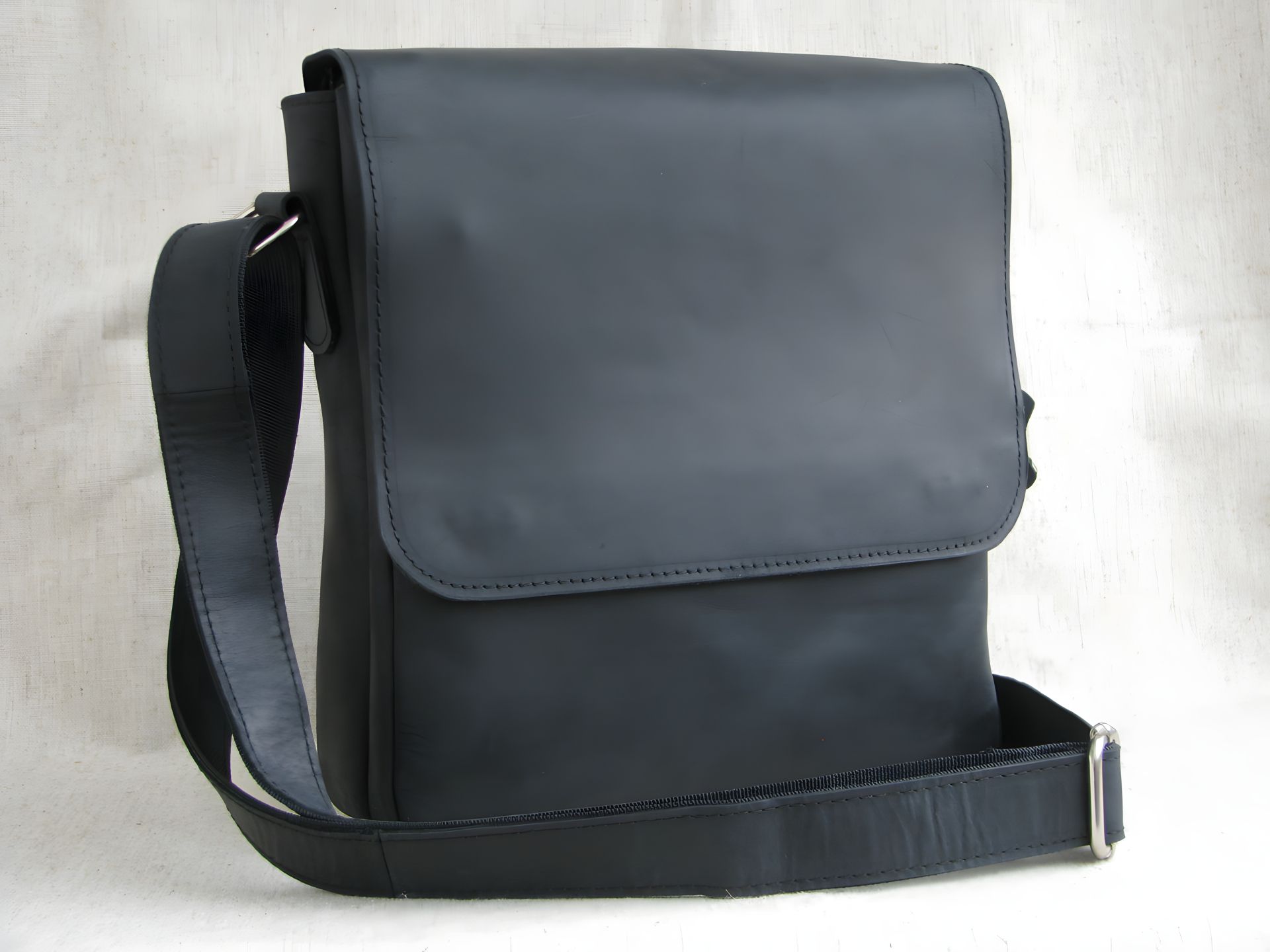 Повседневная большая мужская сумка из натуральной кожи с ремнем через плечо. Кожа КРС повышенной прочности , обработанная воском , винтажная Crazy Horse. В сумке 2 основных отдела размерами 26*24*2 см и 26*24*5 см , которые закрываются металлическими молниями. В основном отделе небольшой карман для документов или ключей и большой карман у задней стенки . На передней и задней стенке большие карманы на молнии . Вся сумка закрывается клапаном с магнитными кнопками. Ремень через плечо (150 см) обшит кожей и регулируется по длине . Наружные размеры 27*24*7 см