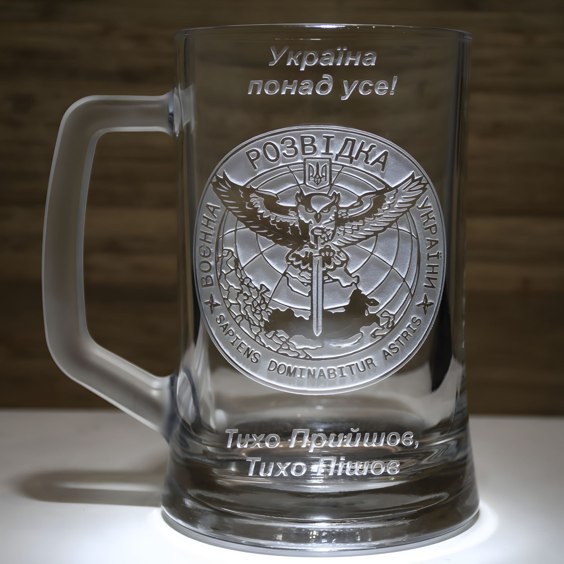 Сувенирный бокал для пива с гравировкой "Воєнна розвідка"