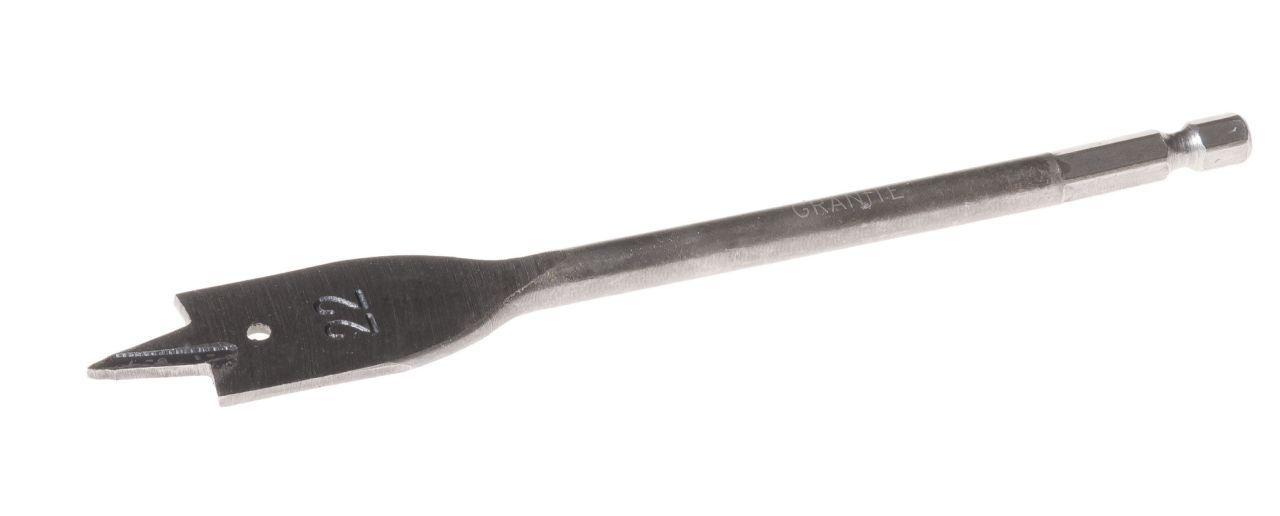 Сверло для дерева перьевое Ø 22 мм, длиной 152 мм с 6-гранным хвостовиком ¼" – профессиональный инструмент для быстрого и точного сверления отверстий в древесине, фанере, ДСП и МДФ. Центрирующий наконечник обеспечивает аккуратный старт без смещения, а плоская форма режущей части позволяет выполнять чистые и ровные отверстия. Удлиненная длина 152 мм дает возможность делать более глубокие сверления. 6-гранный хвостовик ¼" гарантирует надежную фиксацию в патроне и совместимость с большинством электродрелей и шуруповертов. Идеально подходит для столярных, монтажных и отделочных работ. • высокоуглеродистая сталь HCS