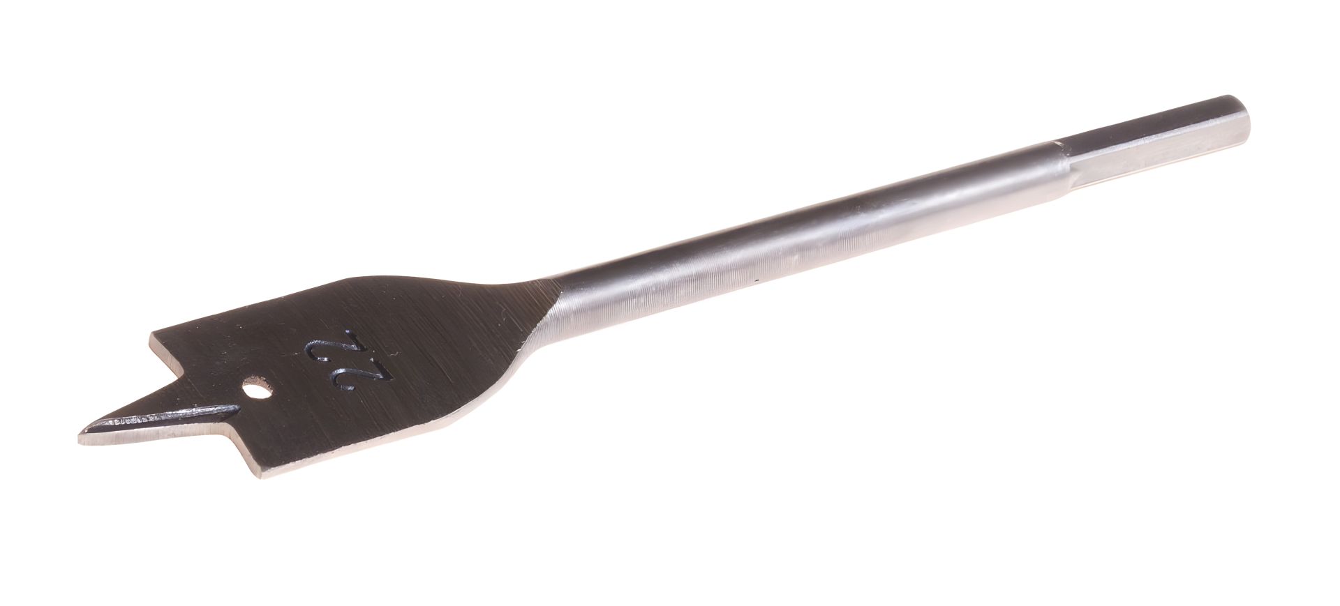 Сверло для дерева перьевое Ø 22 мм, длиной 152 мм с 6-гранным хвостовиком – практичный инструмент для быстрого сверления чистых и ровных отверстий в древесине, фанере, ДСП или МДФ. Оснащено центрирующим наконечником, обеспечивающим точный старт без соскальзывания. Плоская режущая часть гарантирует аккуратный результат даже в толстых заготовках. Благодаря длине 152 мм можно работать с глубинными отверстиями. 6-гранный хвостовик обеспечивает надежную фиксацию в патроне дрели или шуруповерта и предотвращает прокручивание. Идеально подходит как для профессиональных мастеров, так и для домашнего использования. • высокоуглеродистая сталь HCS