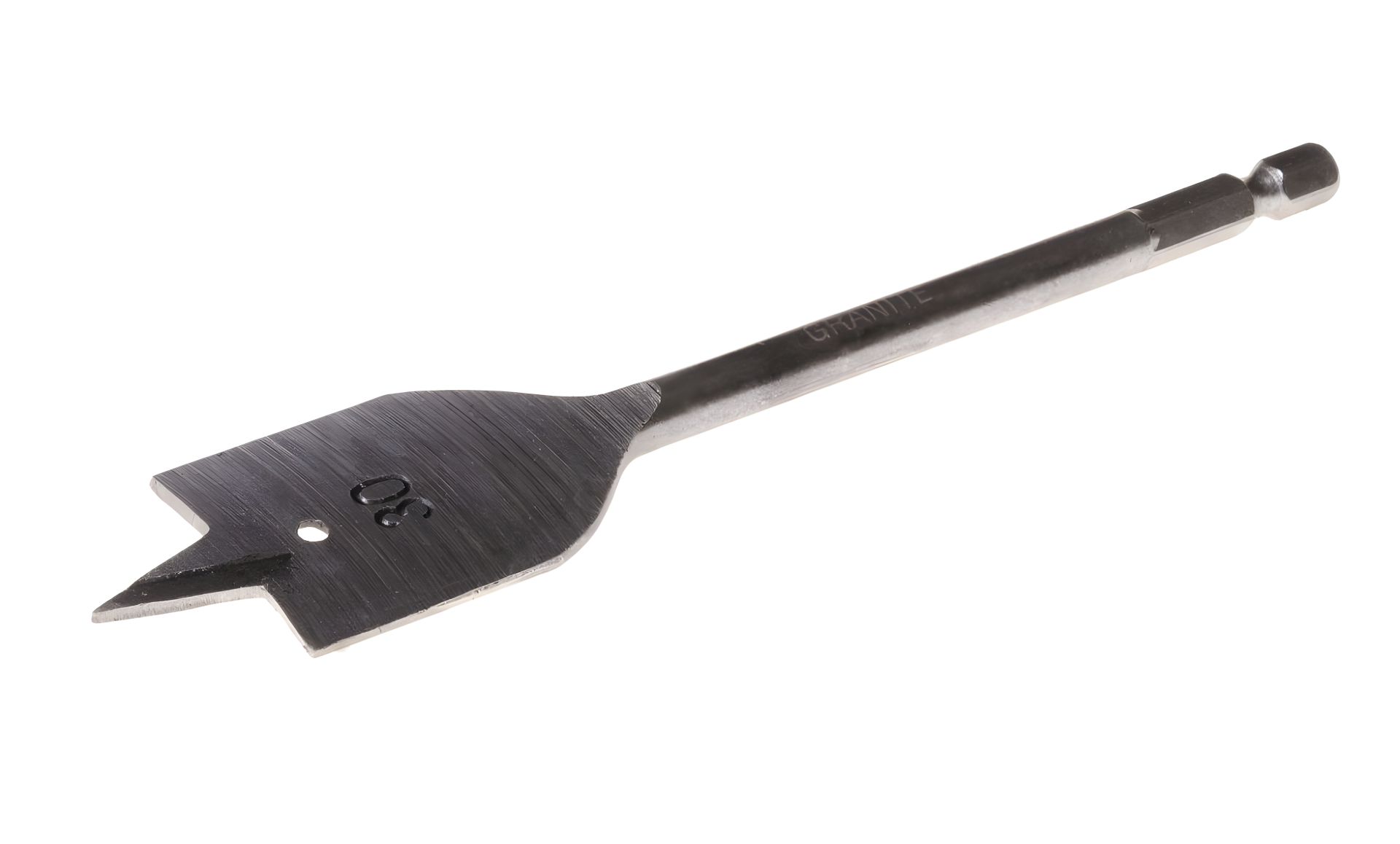 Сверло для дерева перьевое Ø 30 мм, длиной 152 мм с 6-гранным хвостовиком ¼" – надежный инструмент для быстрого и точного сверления в древесине, фанере, ДСП и МДФ. Центрирующий наконечник обеспечивает легкий старт без соскальзывания, а плоская режущая часть позволяет получить чистые и ровные отверстия. Благодаря длине 152 мм можно выполнять более глубокое сверление. 6-гранный хвостовик ¼" гарантирует надежное крепление в патроне и совместимость с большинством электродрелей и шуруповертов. Идеально подходит для столярных, монтажных и отделочных работ. • высокоуглеродистая сталь HCS