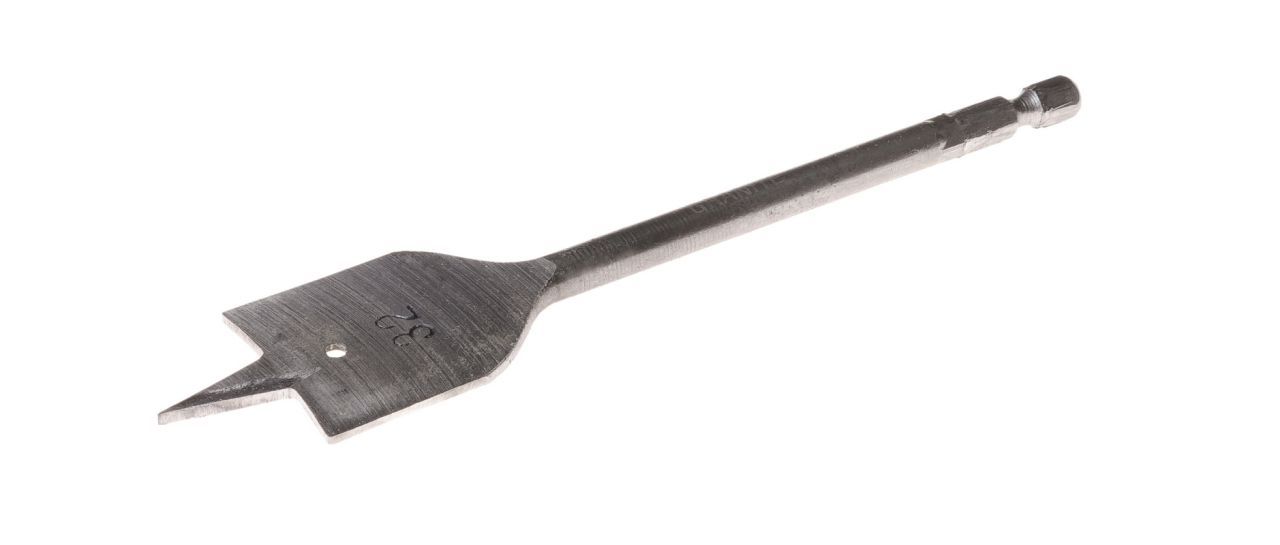 Сверло для дерева перьевое Ø 32 мм, длиной 152 мм с 6-гранным хвостовиком ¼" – высококачественный инструмент для точного сверления отверстий в древесине, фанере, ДСП и МДФ. Центрирующий наконечник обеспечивает стабильный старт без смещения, а плоская режущая часть позволяет получить ровные и чистые отверстия. Длина 152 мм делает сверло пригодным для глубокого сверления. 6-гранный хвостовик ¼" гарантирует надежную фиксацию в патроне и совместимость с большинством электродрелей и шуруповертов. Идеально подходит для столярных, монтажных и отделочных работ. • высокоуглеродистая сталь HCS