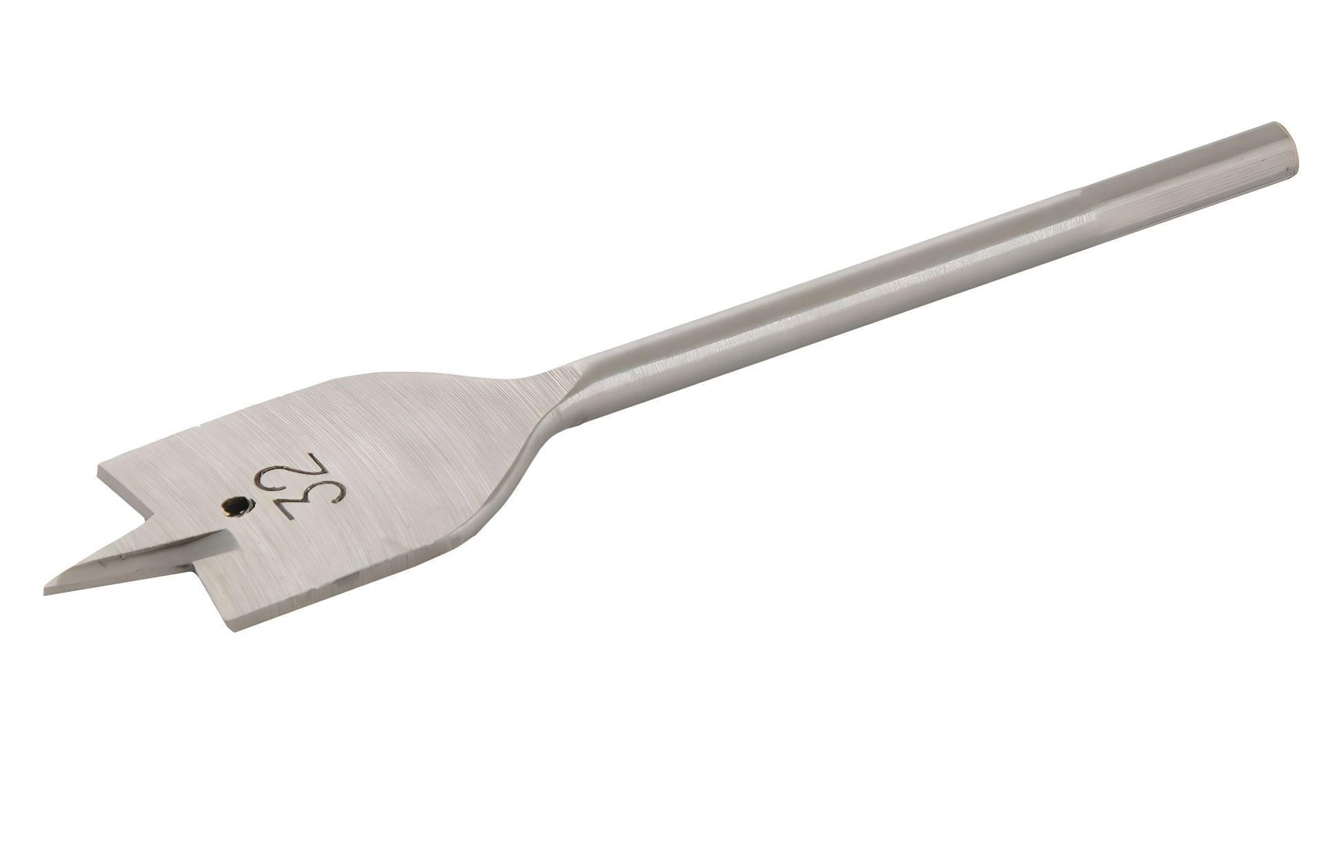 Сверло для дерева перьевое Ø 32 мм, длиной 152 мм с 6-гранным хвостовиком – надежный инструмент для быстрого сверления больших отверстий в древесине, фанере, ДСП и МДФ. Оснащено острым центрирующим острием для точного начала сверления без соскальзывания. Плоская режущая часть обеспечивает чистое и аккуратное формирование отверстий даже в толстых заготовках. Благодаря длине 152 мм подходит для глубоких работ. 6-гранный хвостовик гарантирует надежную фиксацию в патроне дрели или шуруповерта, исключая прокручивание. Оптимальное решение для столярных, монтажных и бытовых работ. • высокоуглеродистая сталь HCS