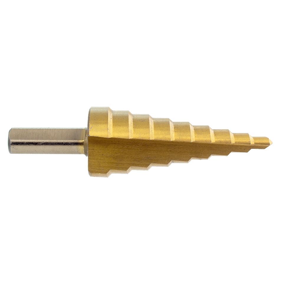 Сверло по металлу ступенчатое HSS-TIN титановое с прямой канавкой Ø4-20мм, шаг 2мм (блистер) SIGMA 1186051
