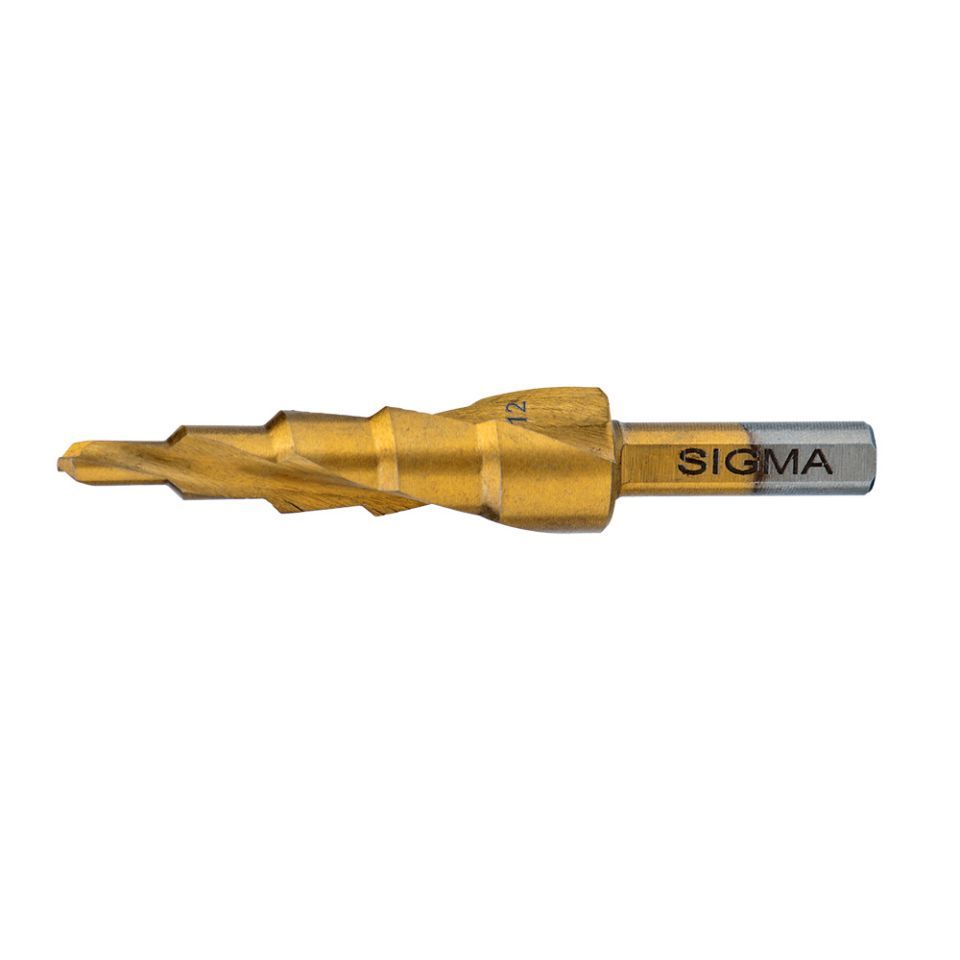 Сверло по металлу ступенчатое HSS-TIN титановое со спиральной канавкой Ø4-12мм, шаг 2мм (блистер) SIGMA 1183041