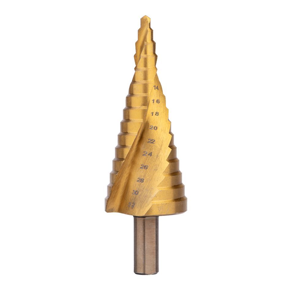 Сверло имеет ступенчатую структуру, где каждая следующая ступень отличается повышенным размером, позволяет постоянно менять диаметр отверстия, не останавливая работу. Разнообразие диапазонов и количество ступенек позволяет решать любые задачи в считанные минуты. На каждой ступеньке сверла есть маркировка диаметра.