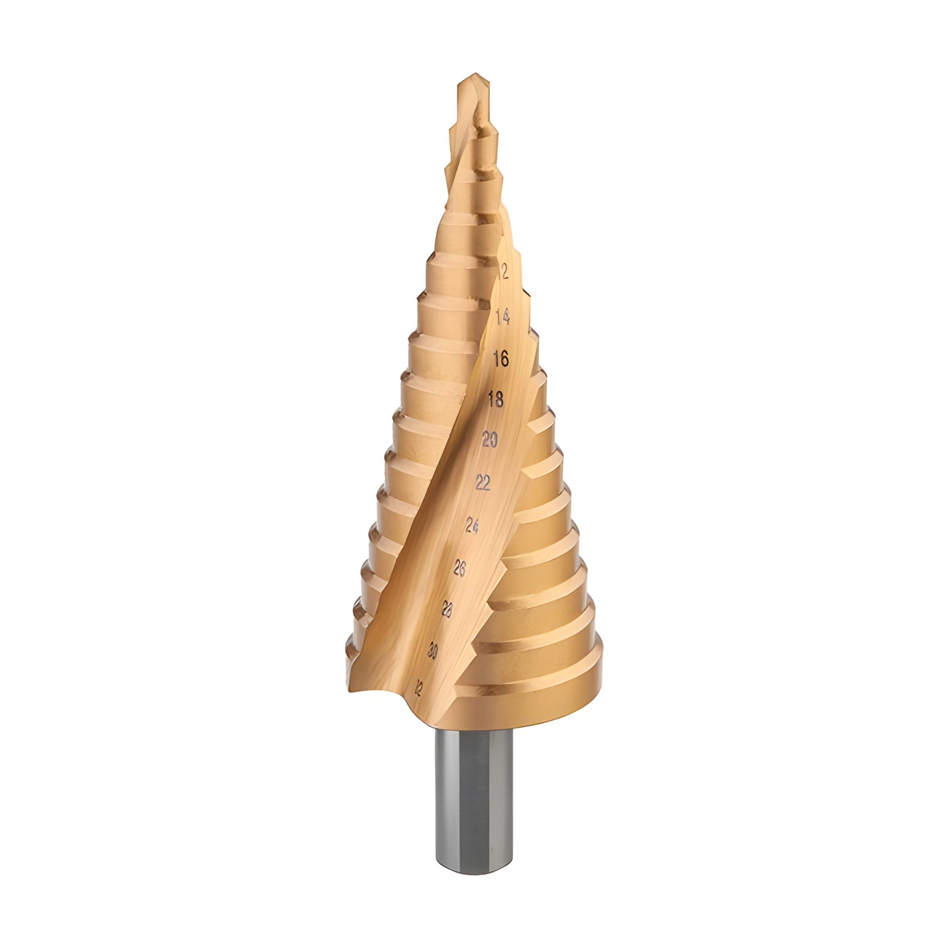 Ступенчатое (шаговое) сверло – отличный помощник для деликатного сверления отверстий в листовых металлах и пластике. Ступенчатая структура позволяет сверлить отверстия разного диаметра 4-32 мм, без замены режущего инструмента.