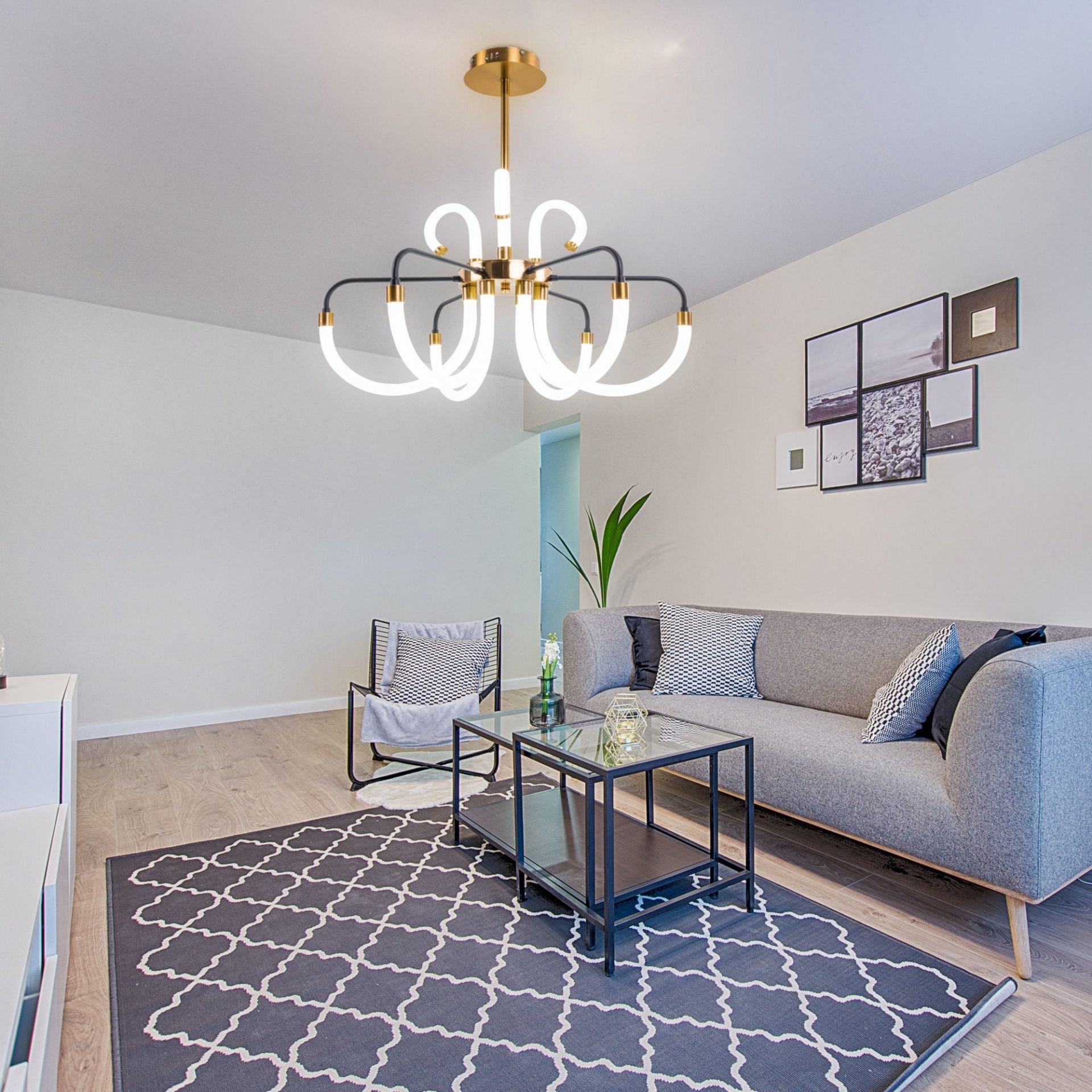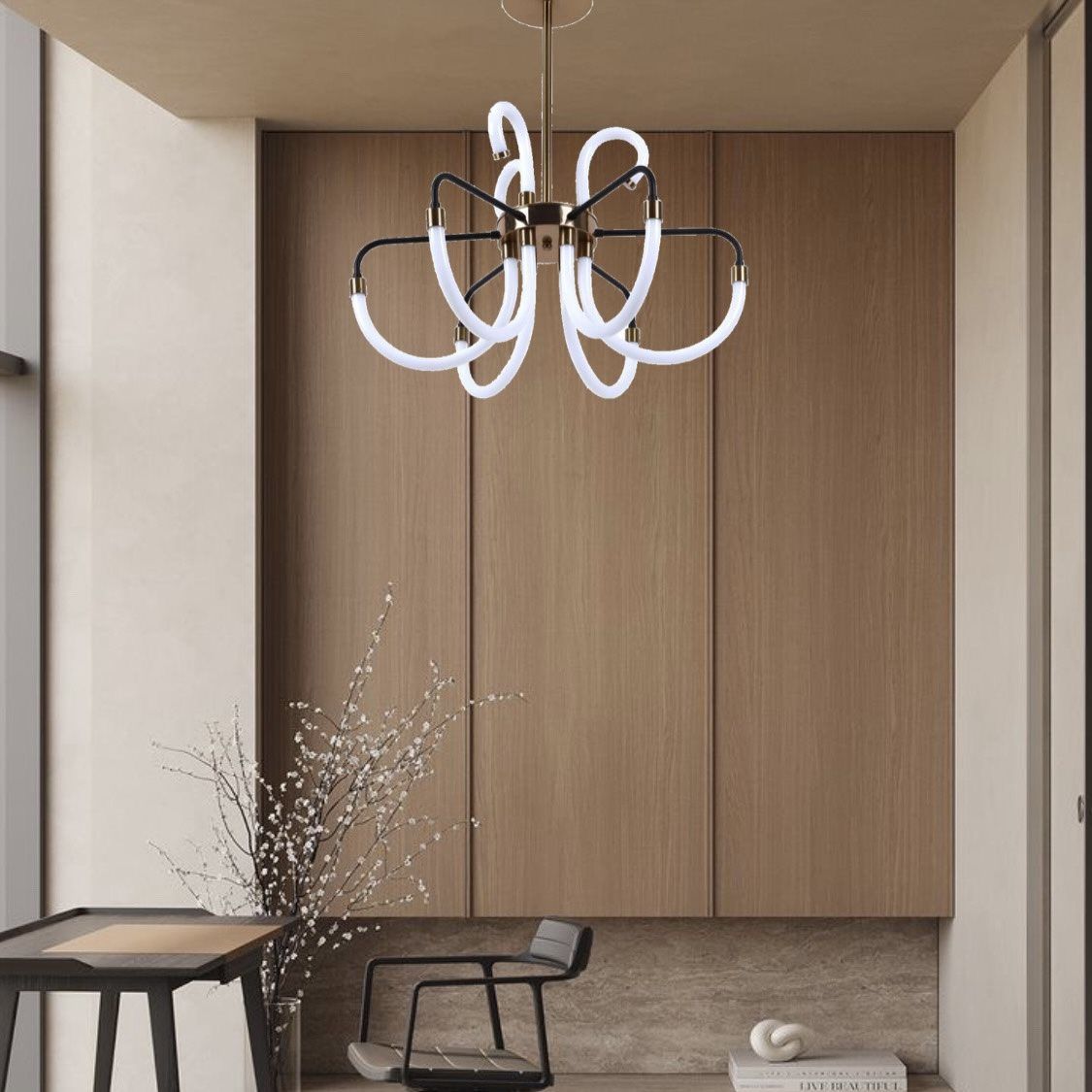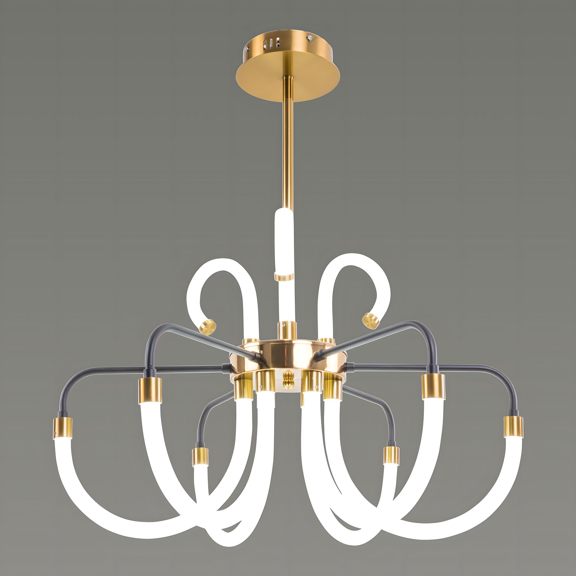 Эта люстра поражает своей формой, играющей со светом и тенью, создавая изысканный игровой эффект. С 6 плафонами она предложит прекрасное равновесие между эстетикой и практичностью, обеспечивая яркое и равномерное освещение каждого уголка.