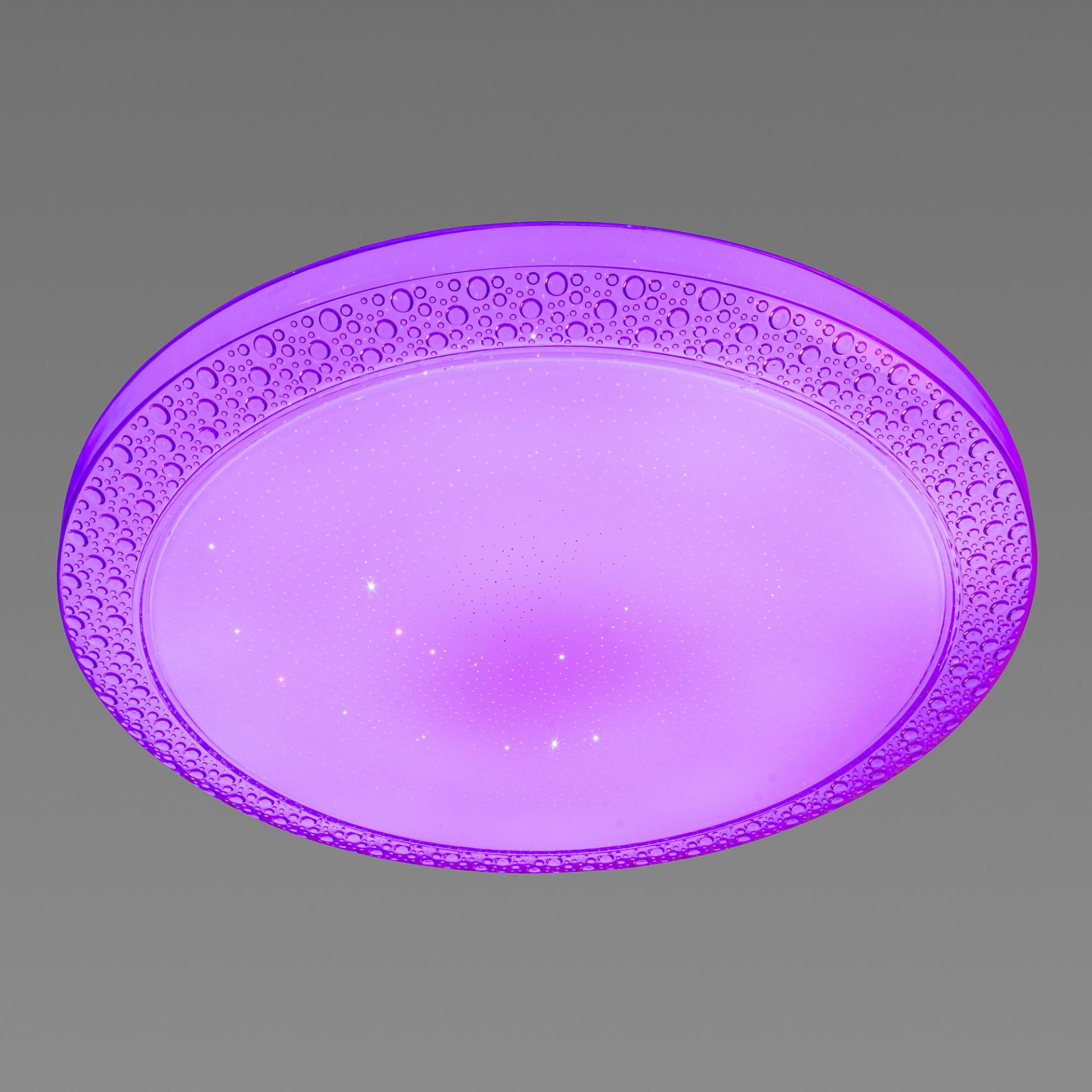 Цвет люстры – прозорий (RGB), придающий теплому и уютному оттенку света. Этот цветной вариант создает приятную атмосферу и расслабляет. Также в наличии у нас такие же люстры только больше диаметром и большей мощности!