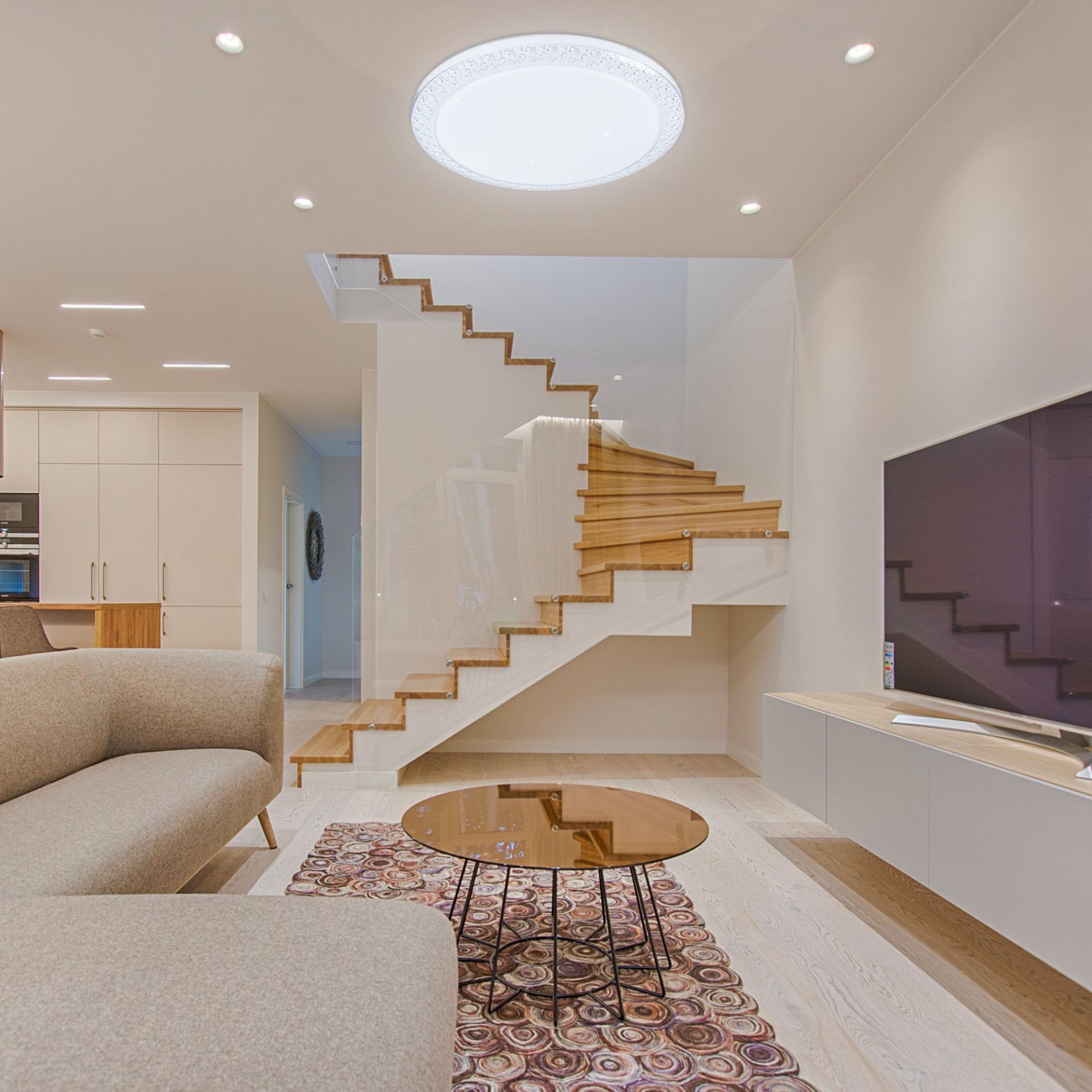 Форма люстры – круглая, что позволяет ей легко вписываться в любой интерьер. Этот классический дизайн придает светильнику универсальность и уверенное присутствие в помещении.