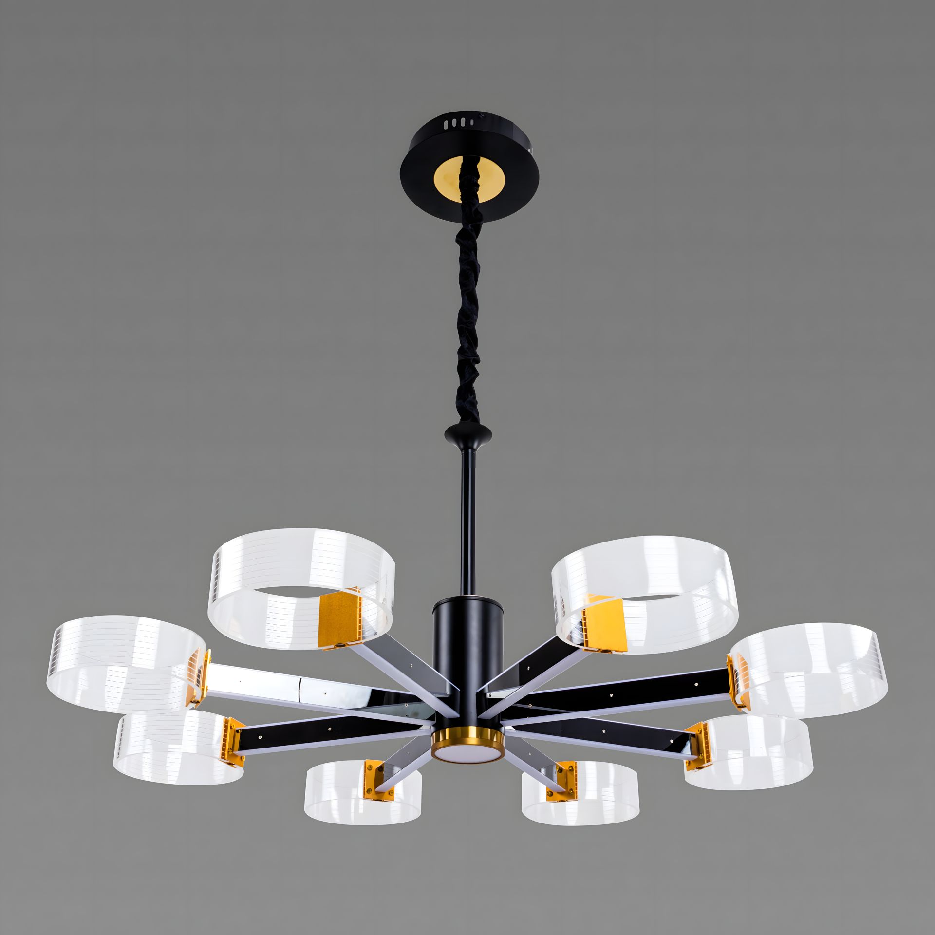 Светодиодная акриловая люстра Sirius N 3705-8 BLACK+GD – это впечатляющий осветительный прибор, который украсит ваш интерьер и обеспечит яркое и эффектное освещение.