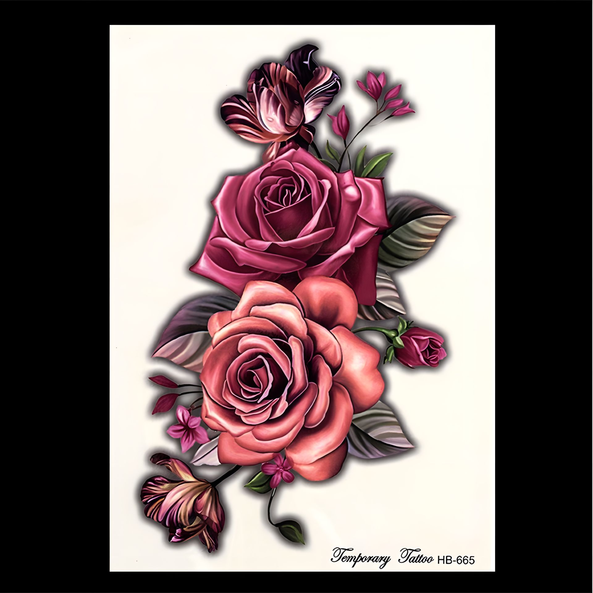 Временная татуировка наклейка на тело: лето, розы цветная