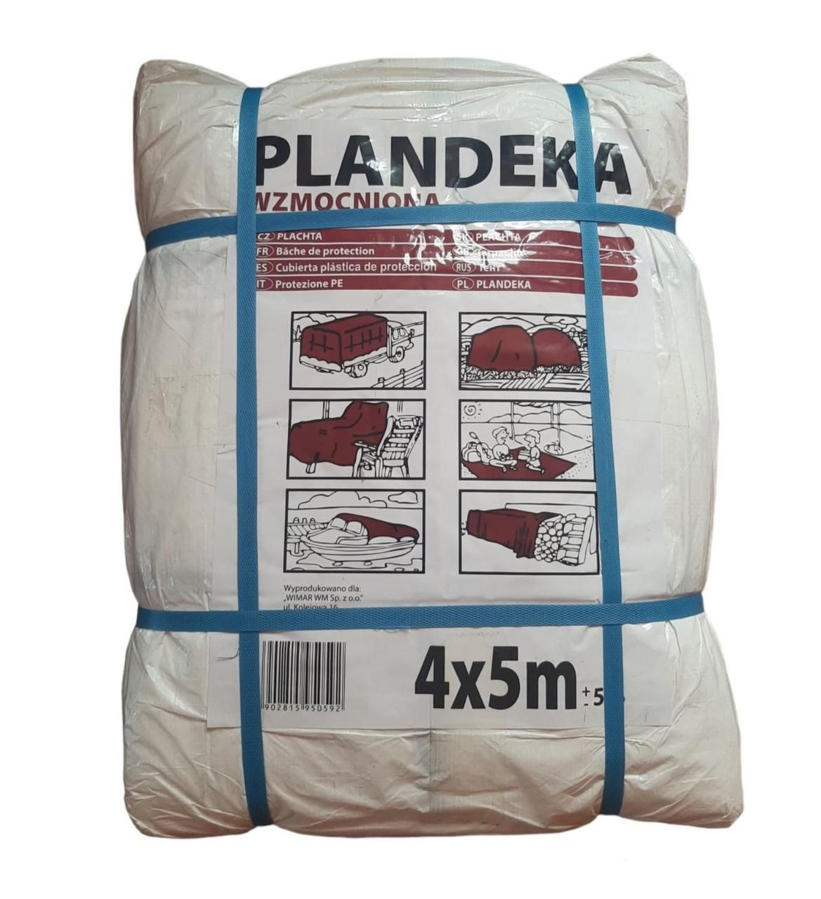 Универсальный защитный тент Пландека Тарпаулин от польского бренда Wimar размером 4х5м и плотностью 90г/м² - идеальное решение для защиты от дождя, снега, солнца и пыли. Изготовлен из прочного плетеного полипропилена с ламинированным покрытием, тент обеспечивает надежную гидроизоляцию и устойчивость к внешним воздействиям.