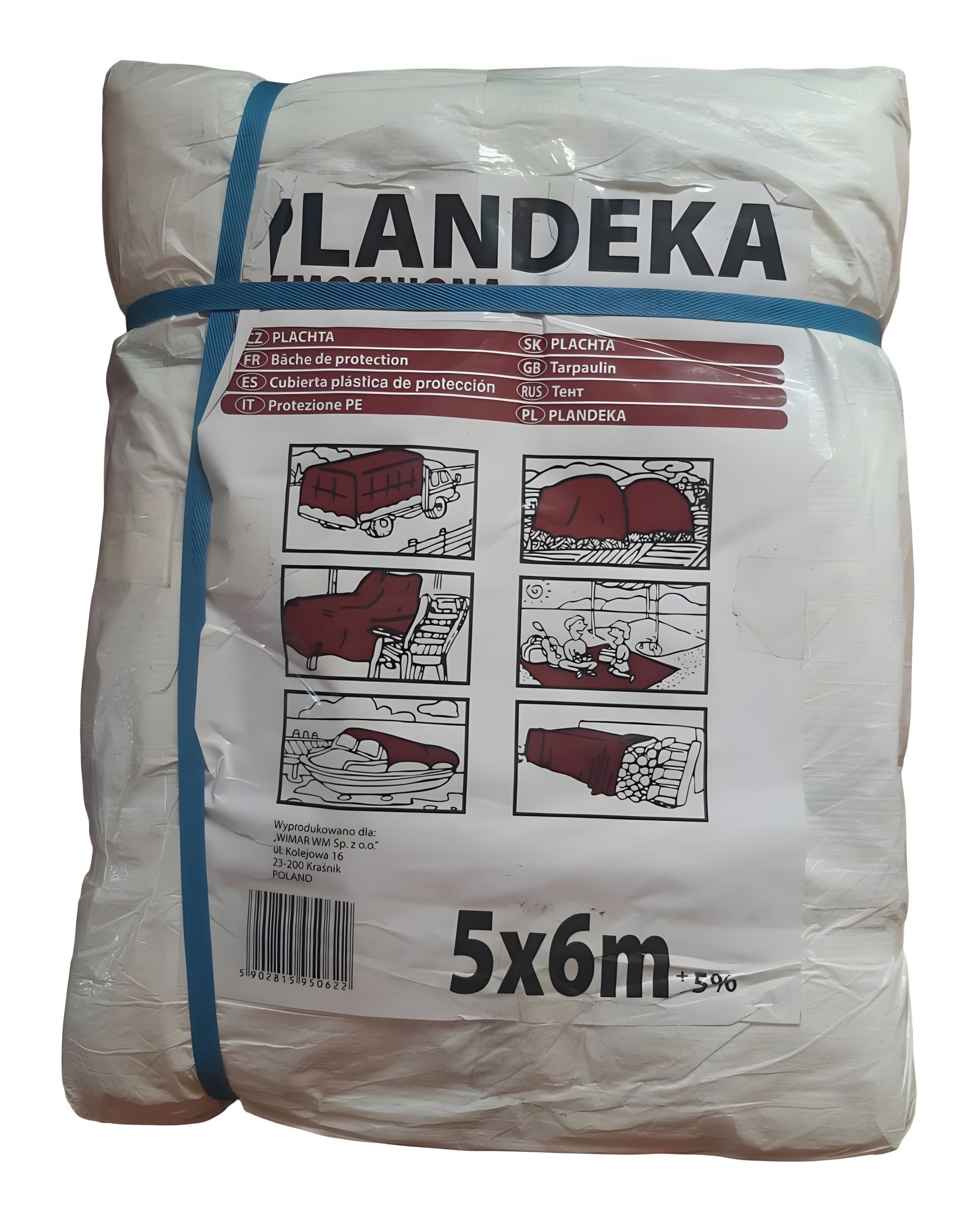 Универсальный защитный тент Пландека Тарпаулин от польского бренда Wimar размером 5х6м и плотностью 90г/м² - идеальное решение для защиты от дождя, снега, солнца и пыли. Изготовлен из прочного плетеного полипропилена с ламинированным покрытием, тент обеспечивает надежную гидроизоляцию и устойчивость к внешним воздействиям.