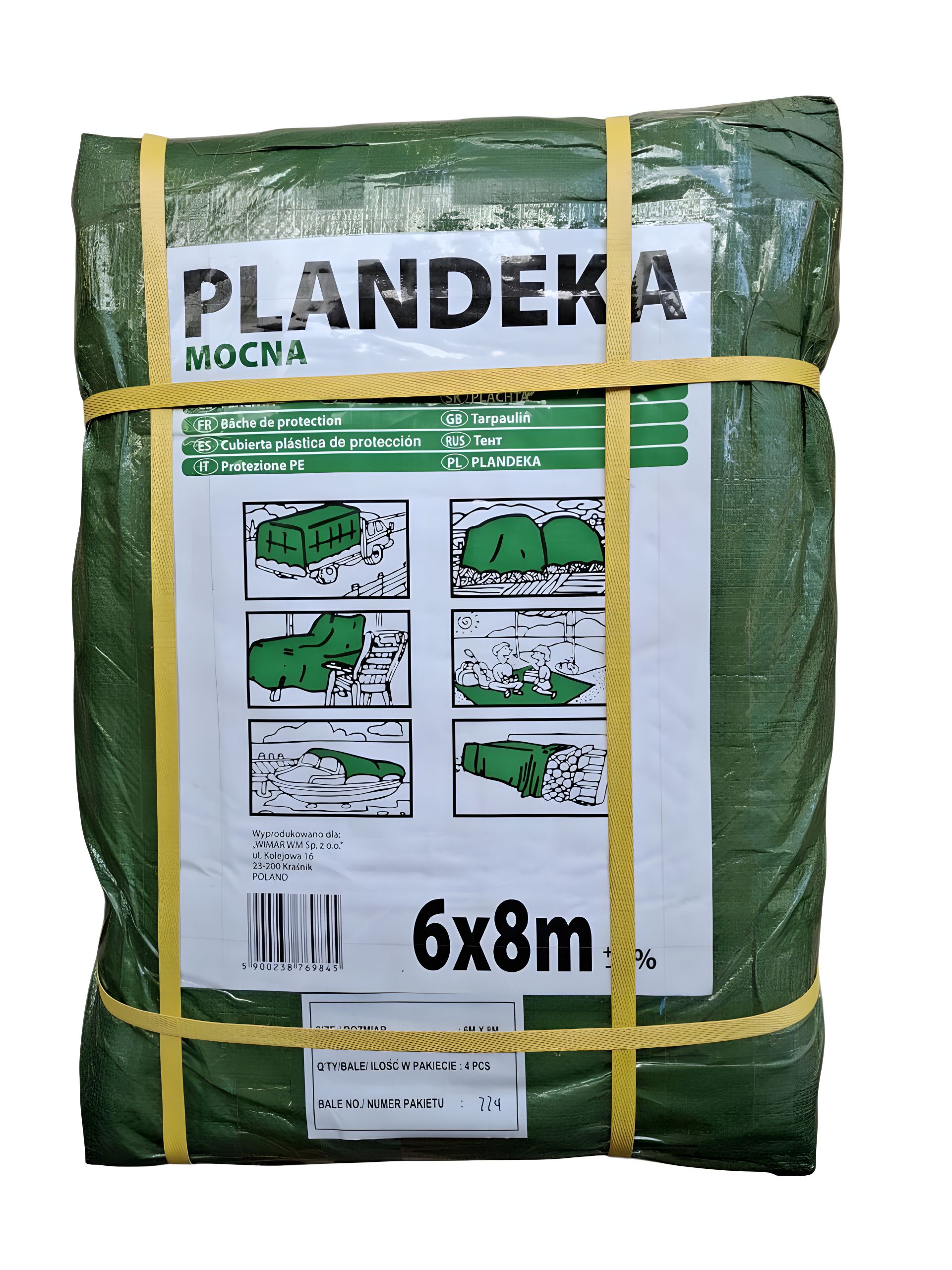 Универсальный защитный тент Пландека Тарпаулин от польского бренда Wimar размером 6х8м и плотностью 110г/м² - идеальное решение для защиты от дождя, снега, солнца и пыли. Изготовлен из прочного плетеного полипропилена с ламинированным покрытием, тент обеспечивает надежную гидроизоляцию и устойчивость к внешним воздействиям.