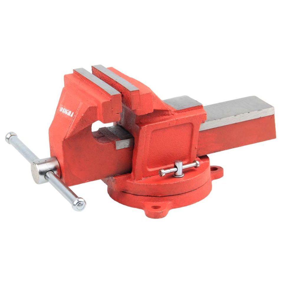 Тиски поворотные 100мм SIGMA (4221001) предназначены для зажима деталей (изделий) в положении, обеспечивающем удобство при их обработке (сборке). Модель имеет рельефные губки шириной 100 мм, предотвращающую коррозию окрашенную поверхность и наковальню для небольших столярных работ.