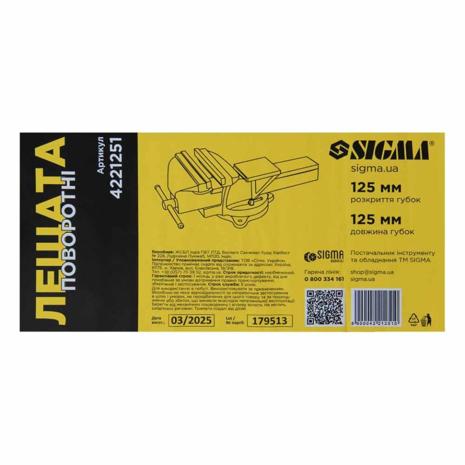 Тиски поворотные 125мм SIGMA 4221251