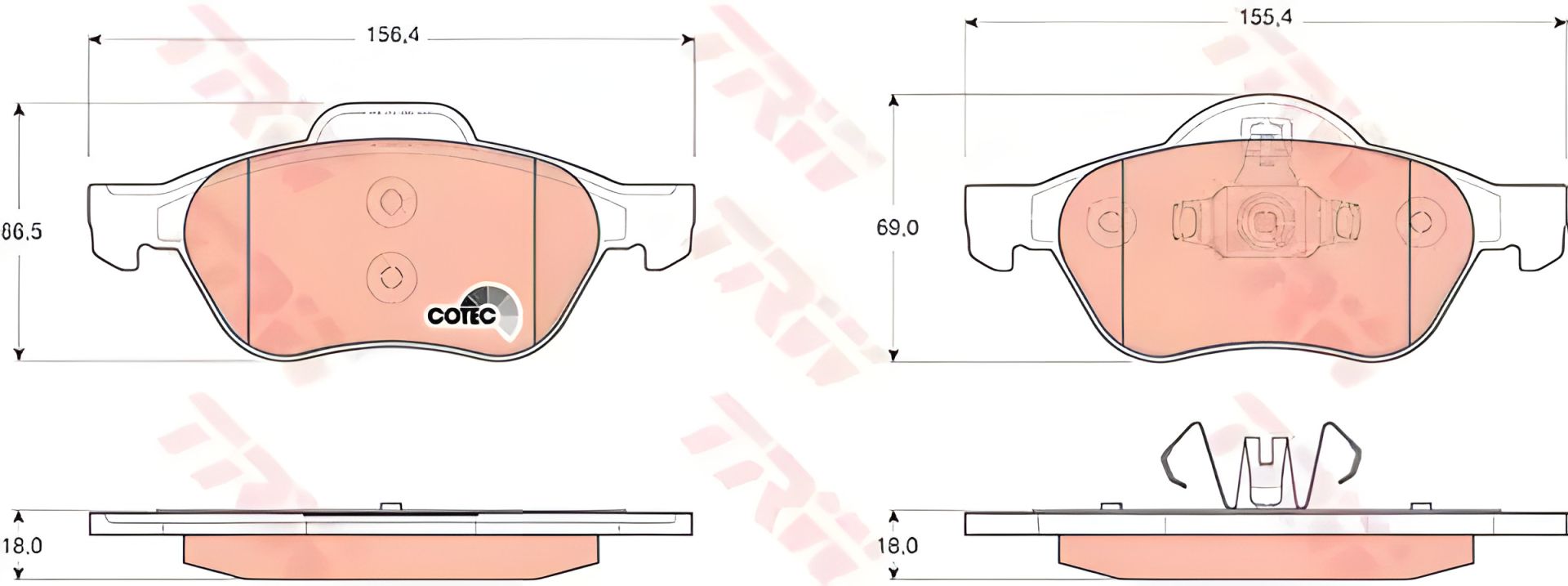 Передние тормозные колодки для RENAULT MEGANE II, TRW (GDB1687)