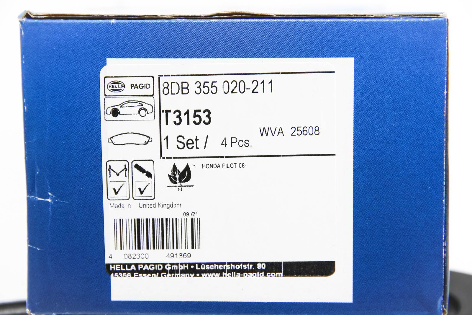 Тормозные колодки Honda Pilot 07-15, HELLA PAGID (8DB355020211)