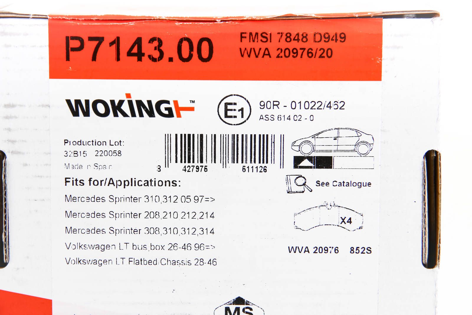 Тормозные колодки Sprinter/LT 96-06 (спарка)/Vario 2.9TD, WOKING (P714300)