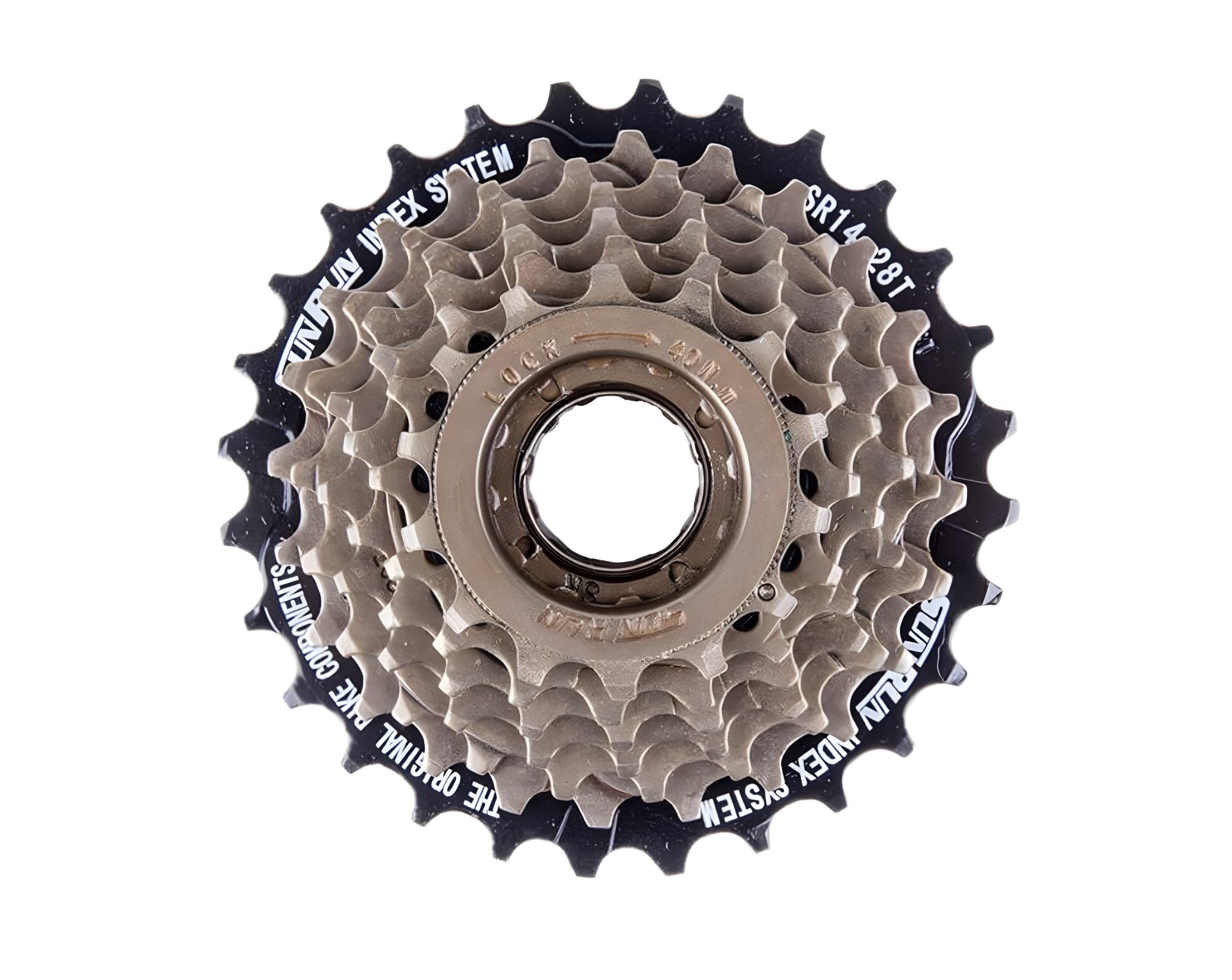 Трещотка SUNRUN FW-71 от китайского производителя, индексная, на 7 скоростей с расчетом звезд 14-28 зубов. Предназначена для использования на горных и кросс-кантри велосипедов с трансмиссией на 7 скоростей. Треть изготовлена из высококачественной стали, так что дает срок службы звезд и цепей. Закрепление в задней втулке с помощью резного соединения.