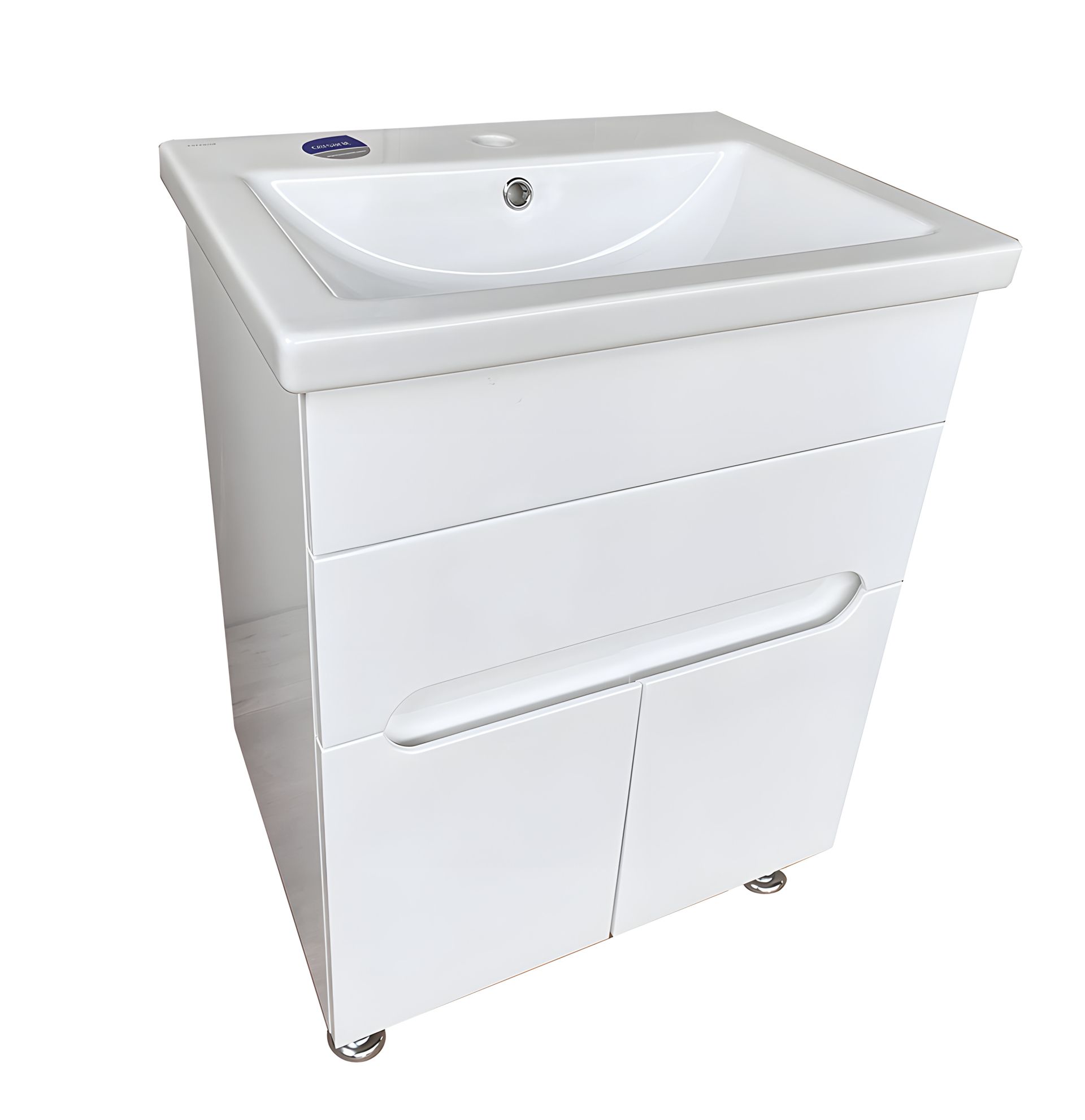 Тумба у ванну GT home Амелія Т-7 60 см (Комо) стане відмінним доповненням до вашої ванної кімнати. Виготовлена з високоякісного ДСП білого кольору. Ширина тумби складає 600 мм зі встановленим умивальником (без умивальника ширина тумби на 30-50 мм менше), глибина 425 мм, висота 780 мм. Ця тумба відрізняється функціональністю завдяки двом розпашним шафкам та одному висувному ящику, де можна зручно зберігати різні предмети. Тумба входить в серію Амелія. Форма умивальника прямокутна, а серія умивальника – Como. Продукція GT home виробляється в Україні і має гарантійний термін у 24 місяці. У комплект не входить умивальник і сифон, їх можна замовити додатково. Умивальник меблевий Cersanit Como 60 см