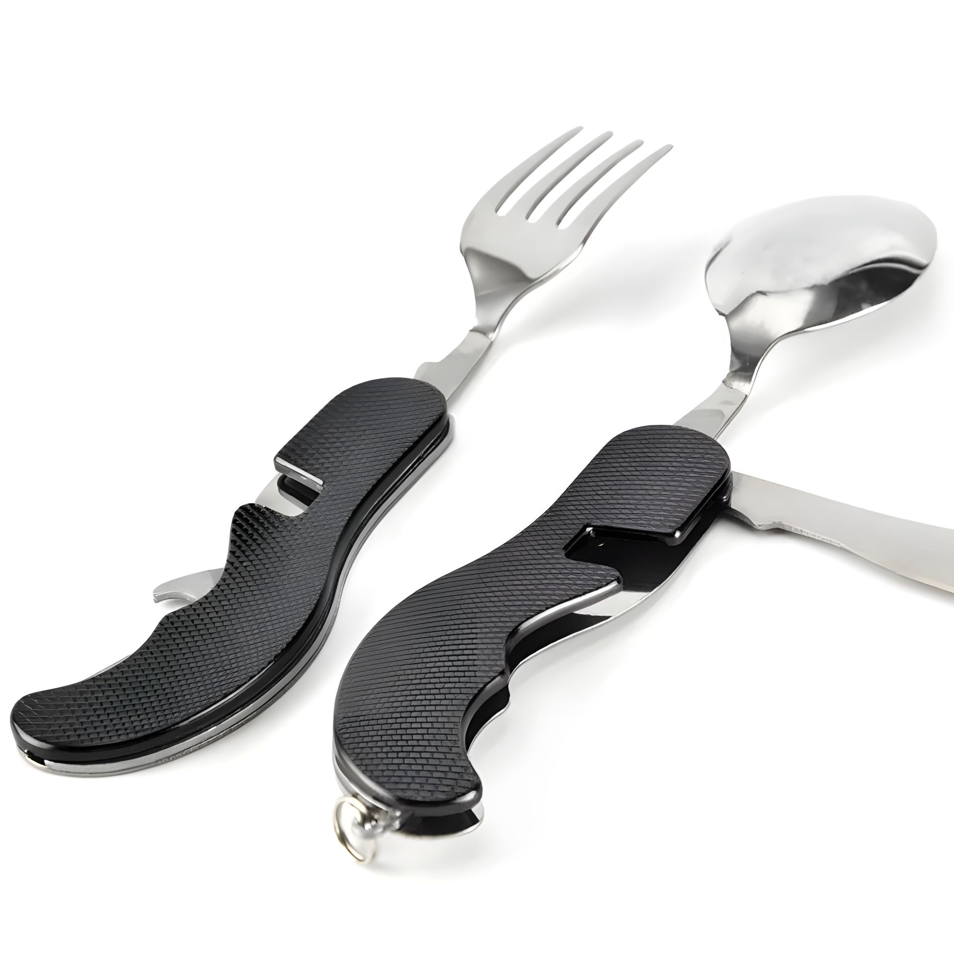Туристический складной набор ложка, вилка, нож, открывашка.