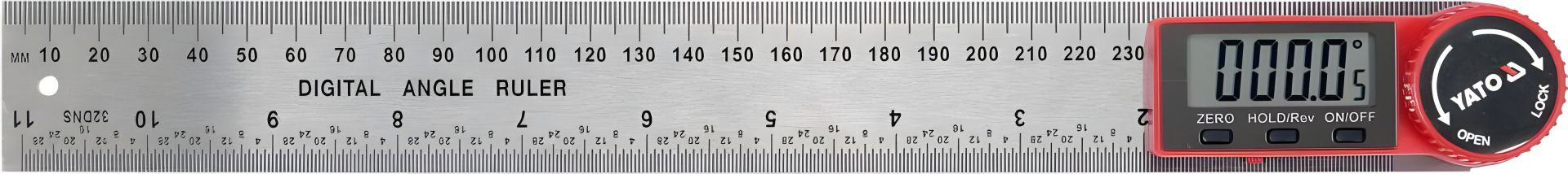 Електронний угломер L - 300 мм, діапазон 0-360°, живлення від батарейки 3V CR2032, Yato YT-71004