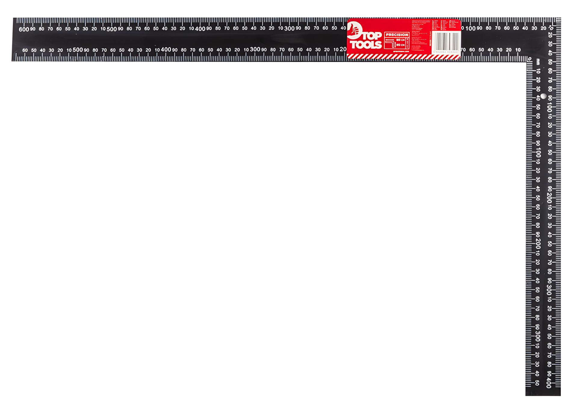 Угольник Top Tools (арт. 30C320) служит для проверки прямого угла. Благодаря наличию шкалы может использоваться в качестве линейки. Размеры угольника 600 мм x 400 мм.