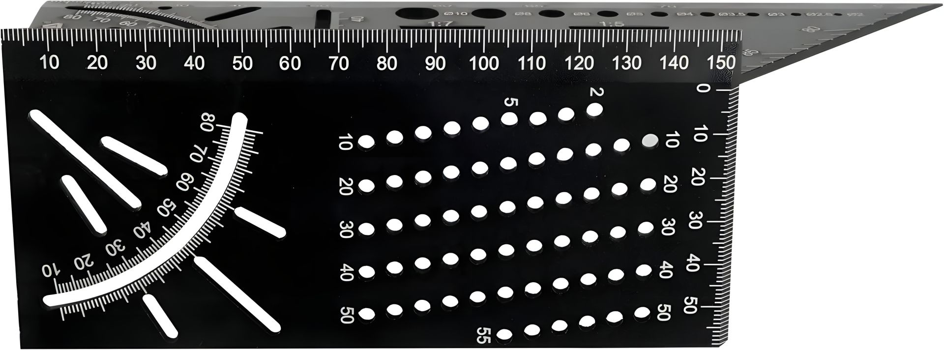 Угольник алюминиевый стереометрический 3D YATO 150х70х215 мм с транспортиром и шаблонами отверстий