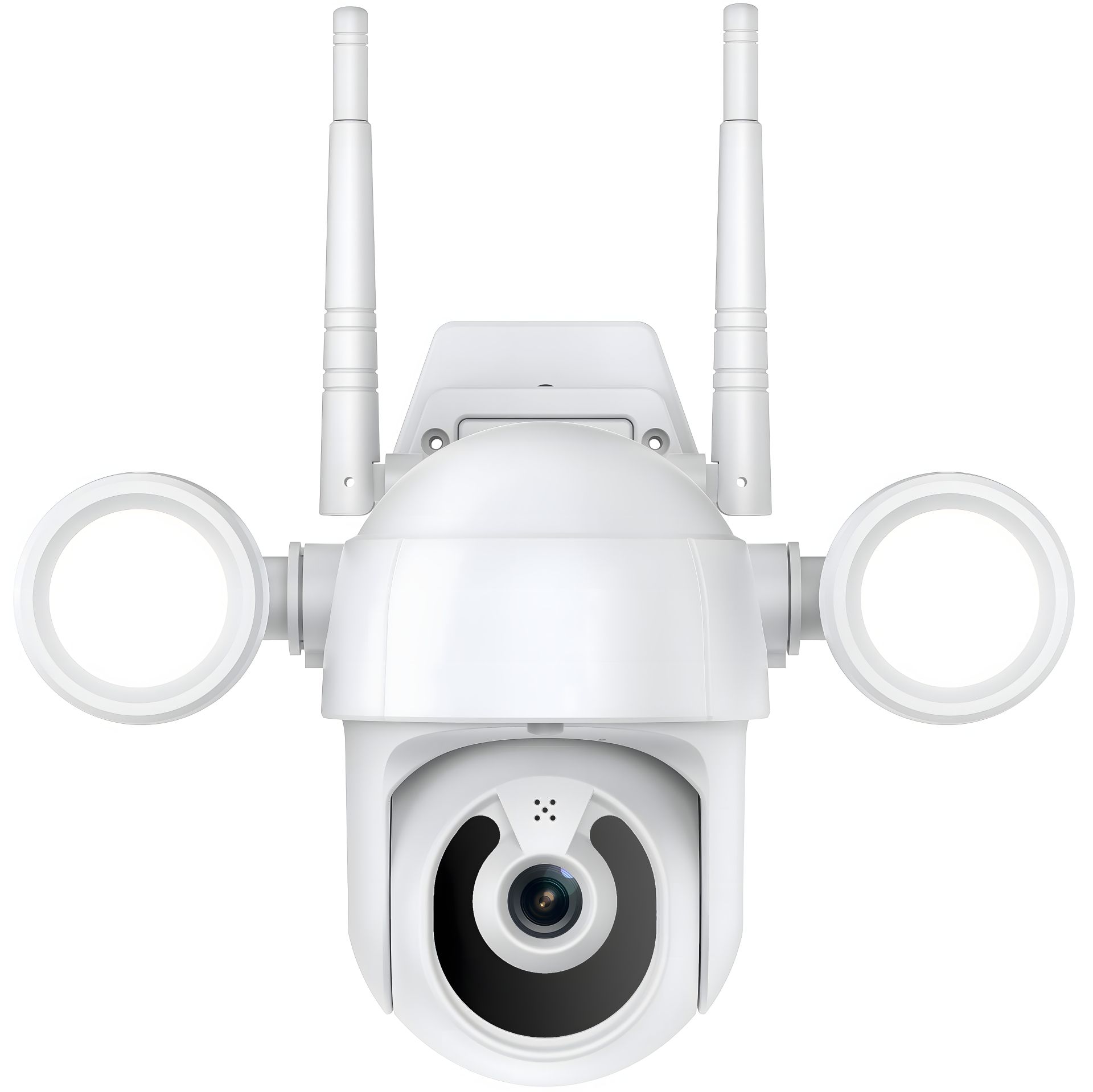 Передача изображения производиться с разрешением 3 МП (2048×1536) с углом обзора 90°. Камера оснащена поворотной PTZ конструкцией, которой можно управлять удаленно и она способна поворачиваться горизонтально на 355° и наклоняться вертикально на 90°. Ночью прибор также отлично снимает видео благодаря встроенной подсветке двух типов: светодиодная и инфракрасная. Переключаться между двумя вариантами подсвечивания можно вручную, или выбрать автоматический режим, который отслеживает окружающий уровень освещенности благодаря встроенному светочувствительному элементу. Также камера оснащена программным датчиком движения, который реагирует на перемещение и сообщает об этом пользователя в мобильном приложении. Есть функция автослежения, когда объектив перемещается вслед за движущимся объектом, после возвращается в заданную позицию. Помимо изображения, девайс способен обмениваться звуком и обладает двусторонней аудиосвязью, благодаря чему вы сможете не просто услышать, что происходит возле камеры, но и удаленно поговорить с посетителями.