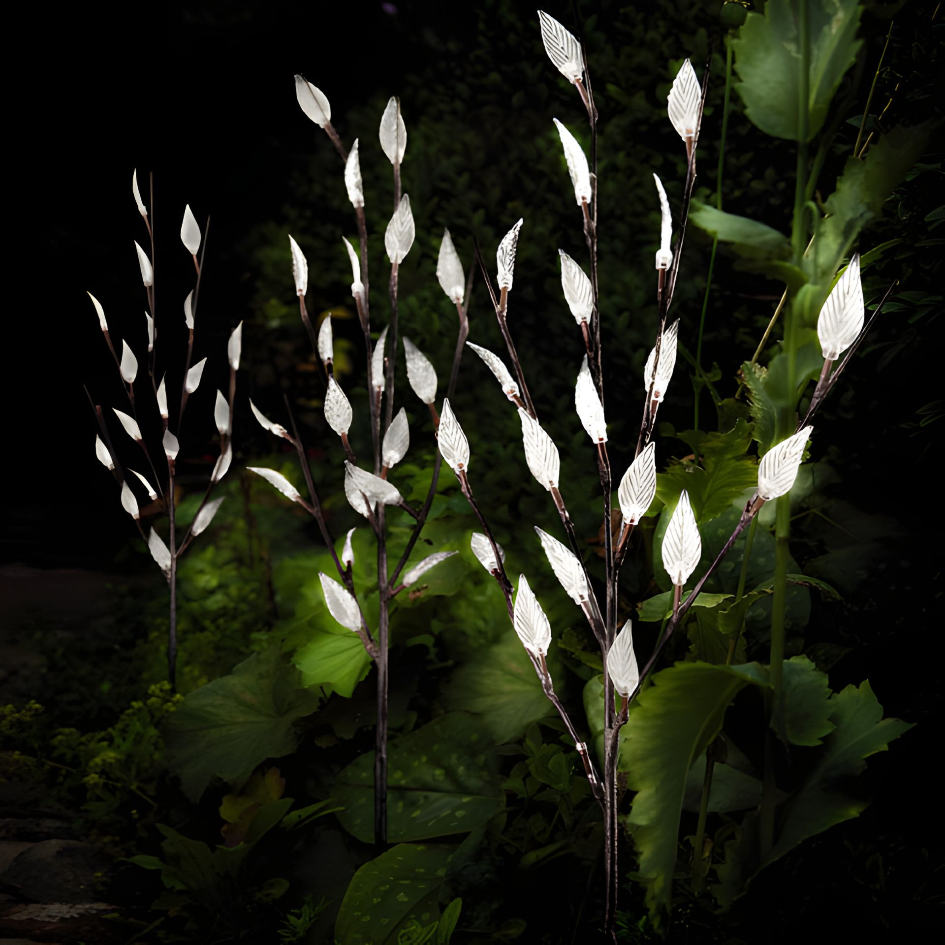 Солнечная лампа для цветов, солнечная панель Amorpghous, 1 перезаряжаемая батарея AAA, 20 теплых белых светодиодов на каждой стойке, всего 60 светодиодов, высота 60 см, горит постоянно и мигает