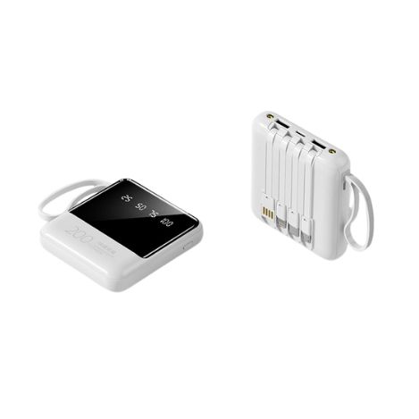 Цей павербанк ємністю 20000 mAh оснащений LCD дисплеєм для контролю заряду, LED ліхтарем та вбудованим кабелем-адаптером 4 в 1.