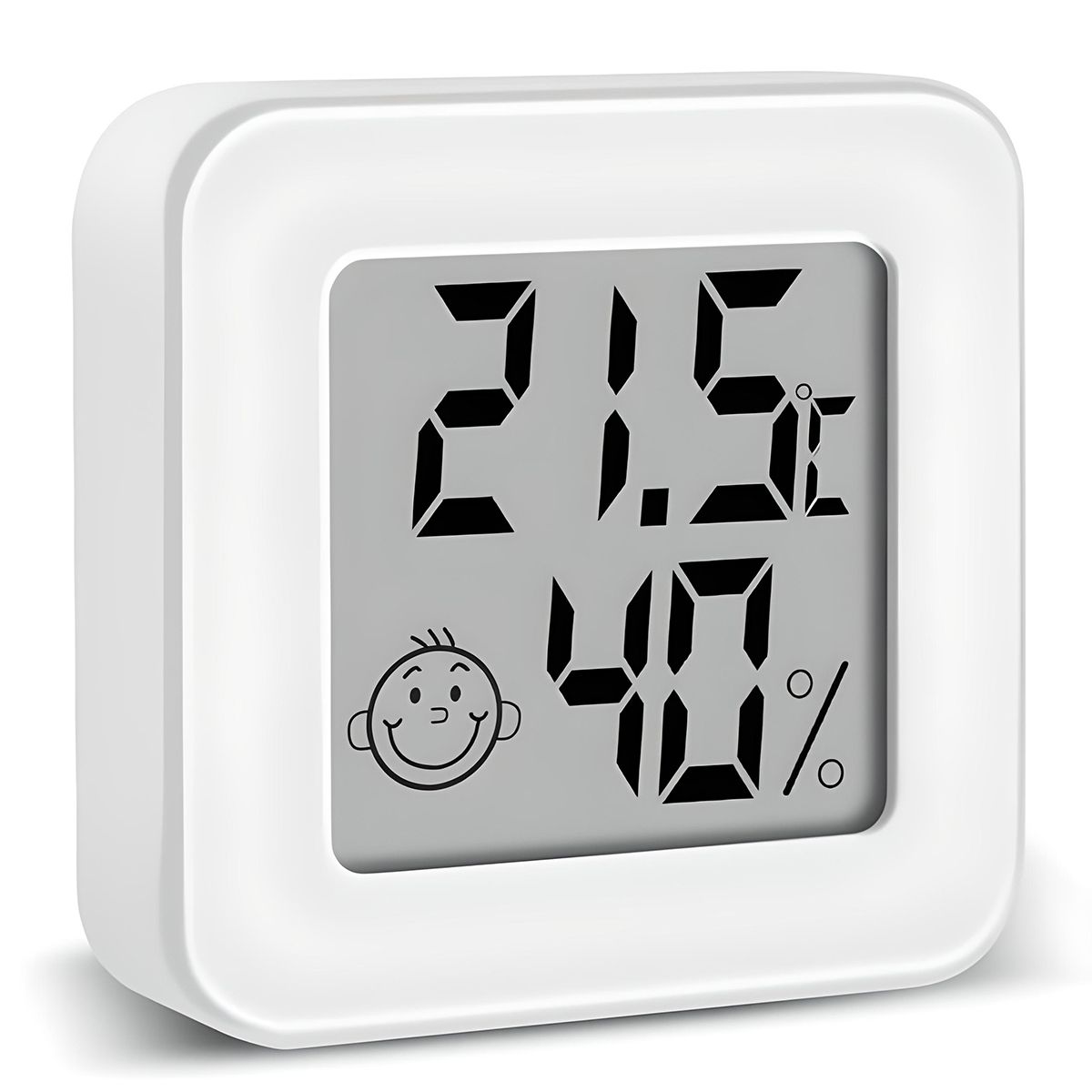 Диапазон измерений температуры достигает 50°C ~ +70°C, а влажности – 10%RH ~ 99%RH. Для измерения температуры можно выбирать комфортные единицы измерения между градусами Цельсия и Фаренгейта. Переключение происходит с помощью специальной кнопки сзади. Датчик максимально точно и оперативно отображает текущие данные, поскольку на задней части корпуса расположено большое вентиляционное отверстие для сбора информации. Одной из особенностей данной модели термогигрометра является наличие индикации уровня комфорта. Она отображена в виде смайлика в левой нижней части, если он расстроен, то уровень влажности слишком низкий или слишком высокий, а если улыбающийся, то уровень комфортный (от 40 до 70 %RH).
