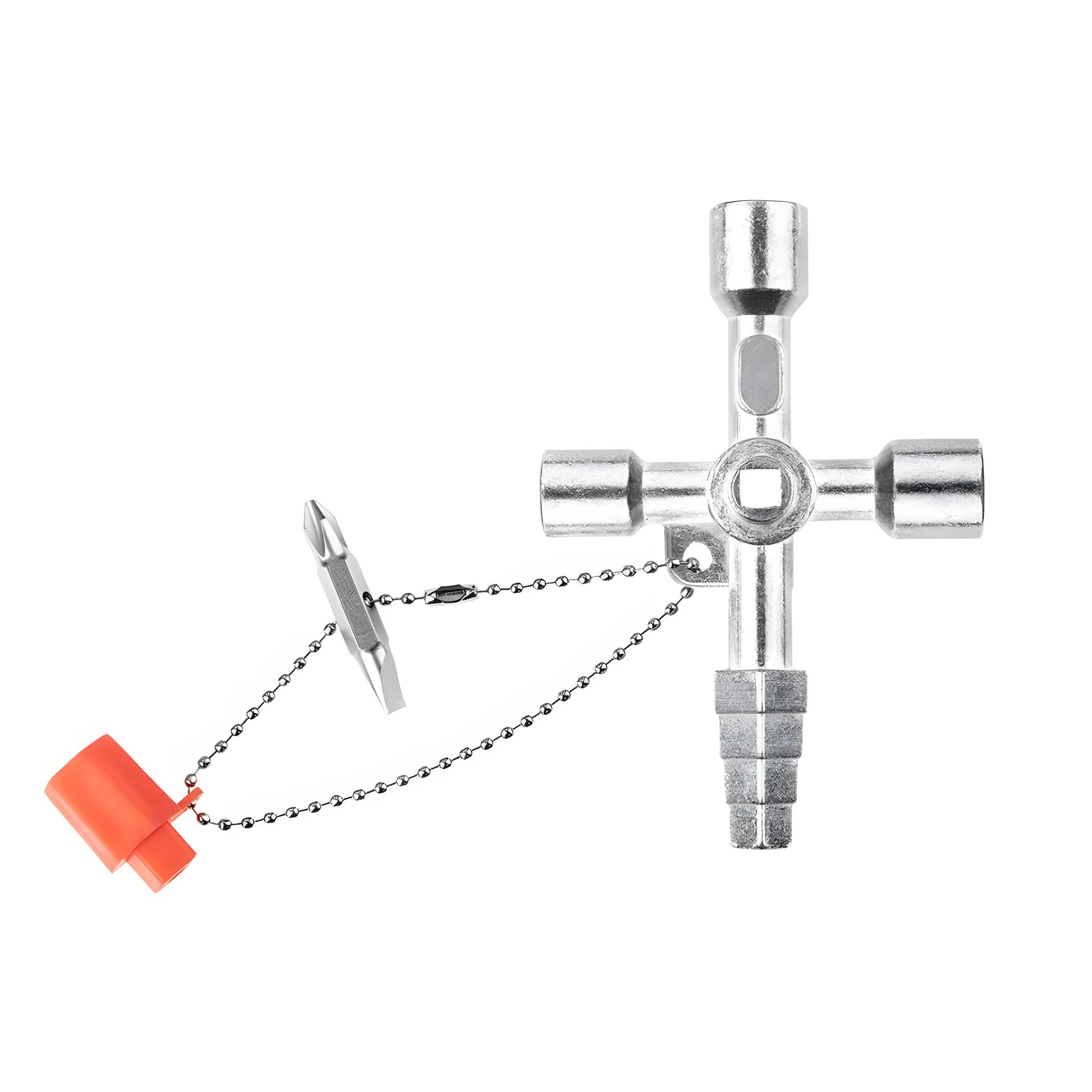 Универсальный ключ для шкафов 01-402, NEO, предназначен для открывания и закрывания наиболее популярных систем шкафов и шкафов управления. Для широкого применения при монтаже электрических, газовых, отопительных, сантехнических установок и лифтов. В первую очередь рекомендуется для сервисных техников и монтажников данного типа установок.