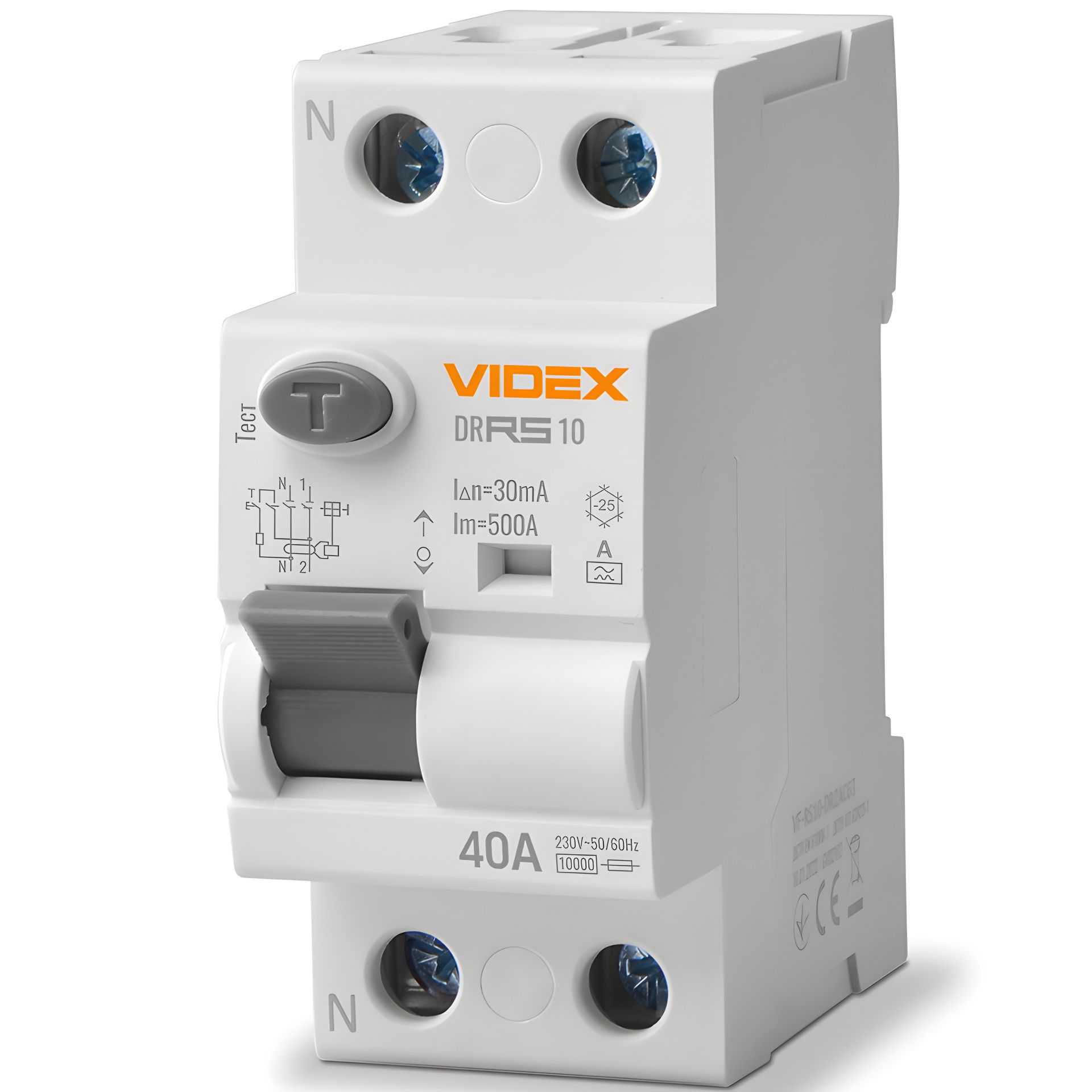 УЗО VIDEX RESIST А 2P 30mA 10kA 40A (VF-RS10-DR2A40)