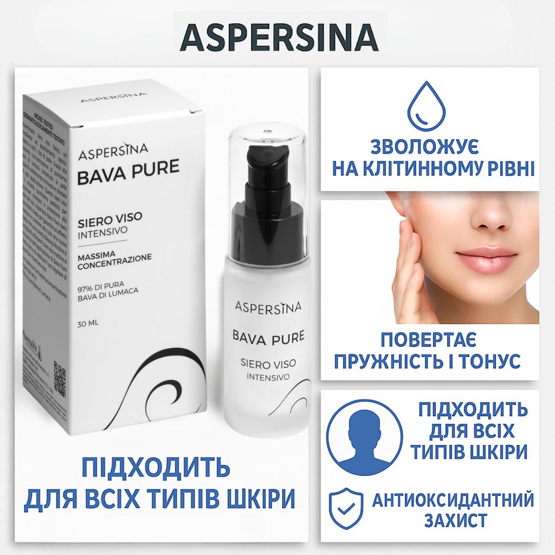 Интенсивная сыворотка Aspersina Bava Pure 97% — максимальная сила муцина улитки для сияния и увлажнения кожи