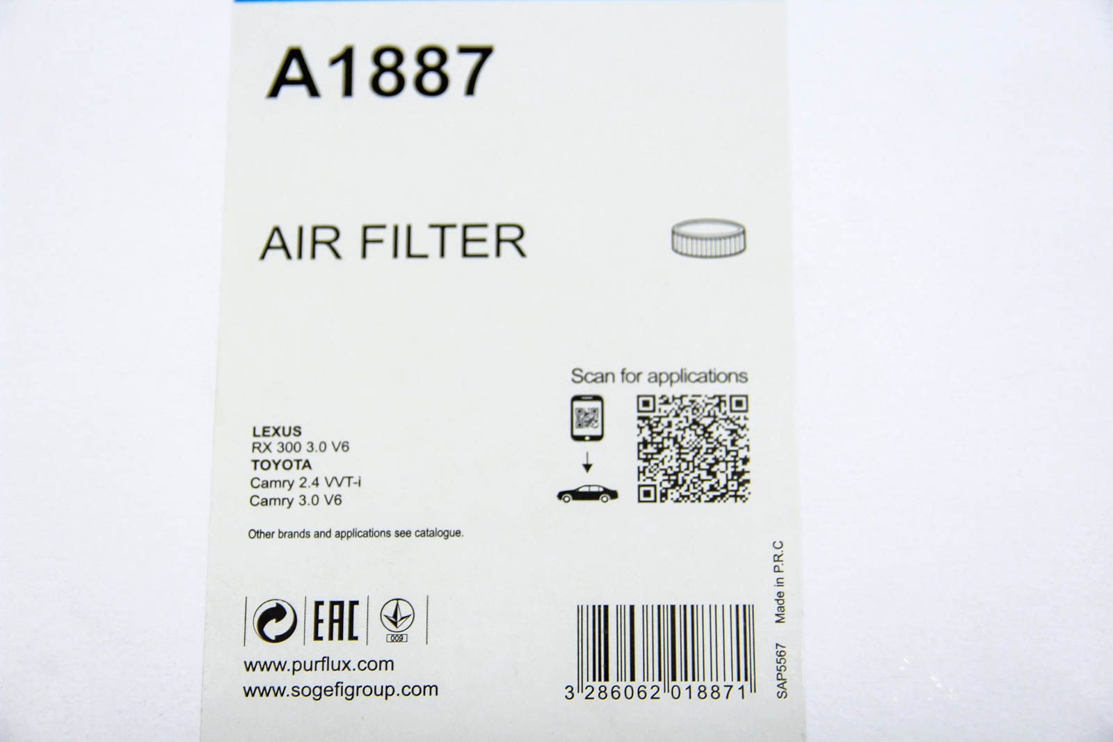 Воздушный фильтр для Lexus ES/RX/Camry 2.4-3.5 91-08, PURFLUX (A1887)