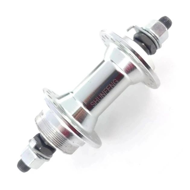 Shunfeng – передняя дисковая втулка серебристой расцветки имеет алюминиевый корпус. Выполнена под гайку. На пром. подшипниках. Качество изделия хорошее.