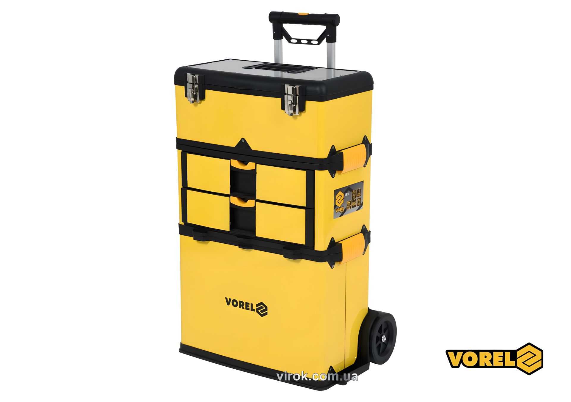 Инструментальный ящик на колесах, пластиковый, 3 секции, 57 х 37 х 84.5 см, телескопическая ручка 58-98 см, Vorel 78738