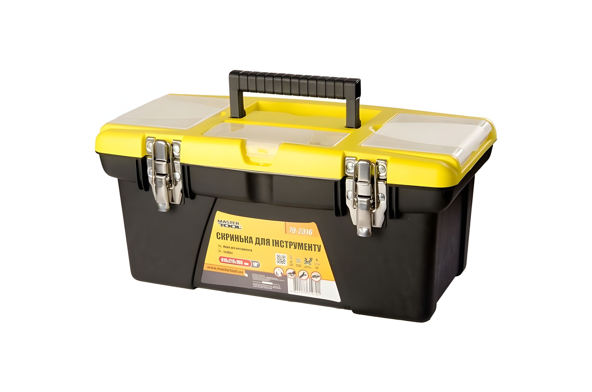 Ящик для инструментов с металлическими замками и съемными органайзерами 16", 415х210х190 мм MASTERTOOL 79-2316