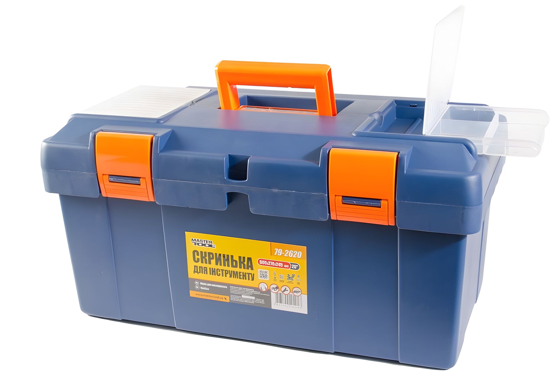 Ящик для инструментов с пластиковыми замками и органайзерами 20" 500х270х245 мм, MASTERTOOL 79-2620