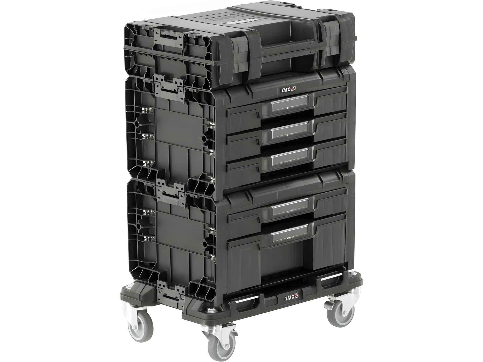 Ящики для инструмента на платформе с колесами S12 4 шт. модулей P05T2T341G2, 507x326x745 мм Yato YT-09191